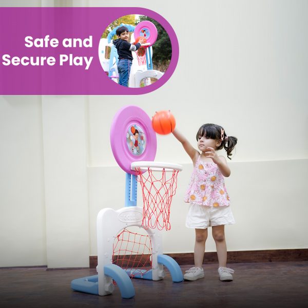 Bring home the ultimate sports experience with this vibrant 3-in-1 playset, combining basketball, football, and ring toss in one exciting setup! Designed to enhance coordination, agility, and motor skills, this playset is perfect for young athletes.Crafted from high-quality, durable plastic, it ensures long-lasting performance while remaining lightweight and easy to move. The bright and playful color combination of red, blue, and white adds an eye-catching appeal, making it an attractive addition to any playroom or backyard.Its simple assembly and sturdy design provide a safe and engaging way for kids to stay active, whether indoors or outdoors. Ideal for fun-filled playtime, this all-in-one sports set is a must-have for energetic little champions!