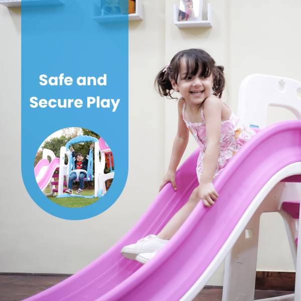 The OK PLAY 5-in-1 Swing, Slide & Basketball Set is the ultimate playtime companion, designed to keep kids active, engaged, and entertained. This versatile playset features a smooth slide, a secure swing with a safety belt, a basketball hoop, a football goal post, and a ring toss game, offering endless fun in one compact unit. Crafted from high-quality, non-toxic, and durable plastic, it ensures a safe and sturdy play experience. The anti-skid design, rounded edges, and strong base provide enhanced stability, making it ideal for both indoor and outdoor use. This all-in-one playset helps develop motor skills, hand-eye coordination, balance, and physical strength, encouraging kids to stay active while enjoying creative and social play. With an easy, tool-free assembly, parents can set it up effortlessly in any playroom, backyard, or garden. Perfect for kids aged 2 years and above, the OK PLAY 5-in-1 Swing, Slide & Basketball Set is a fantastic way to bring fun, fitness, and learning together in one exciting package.