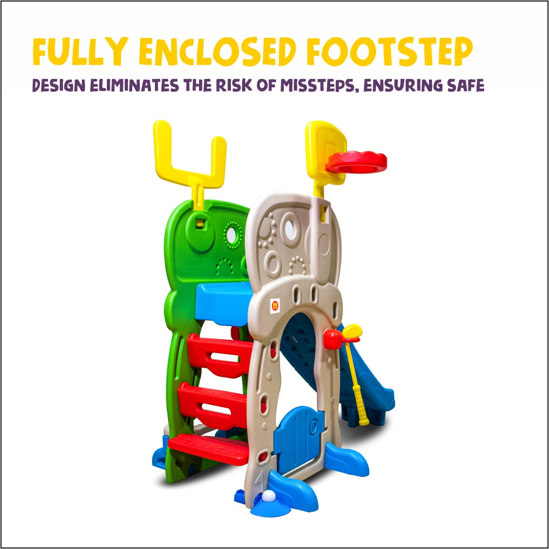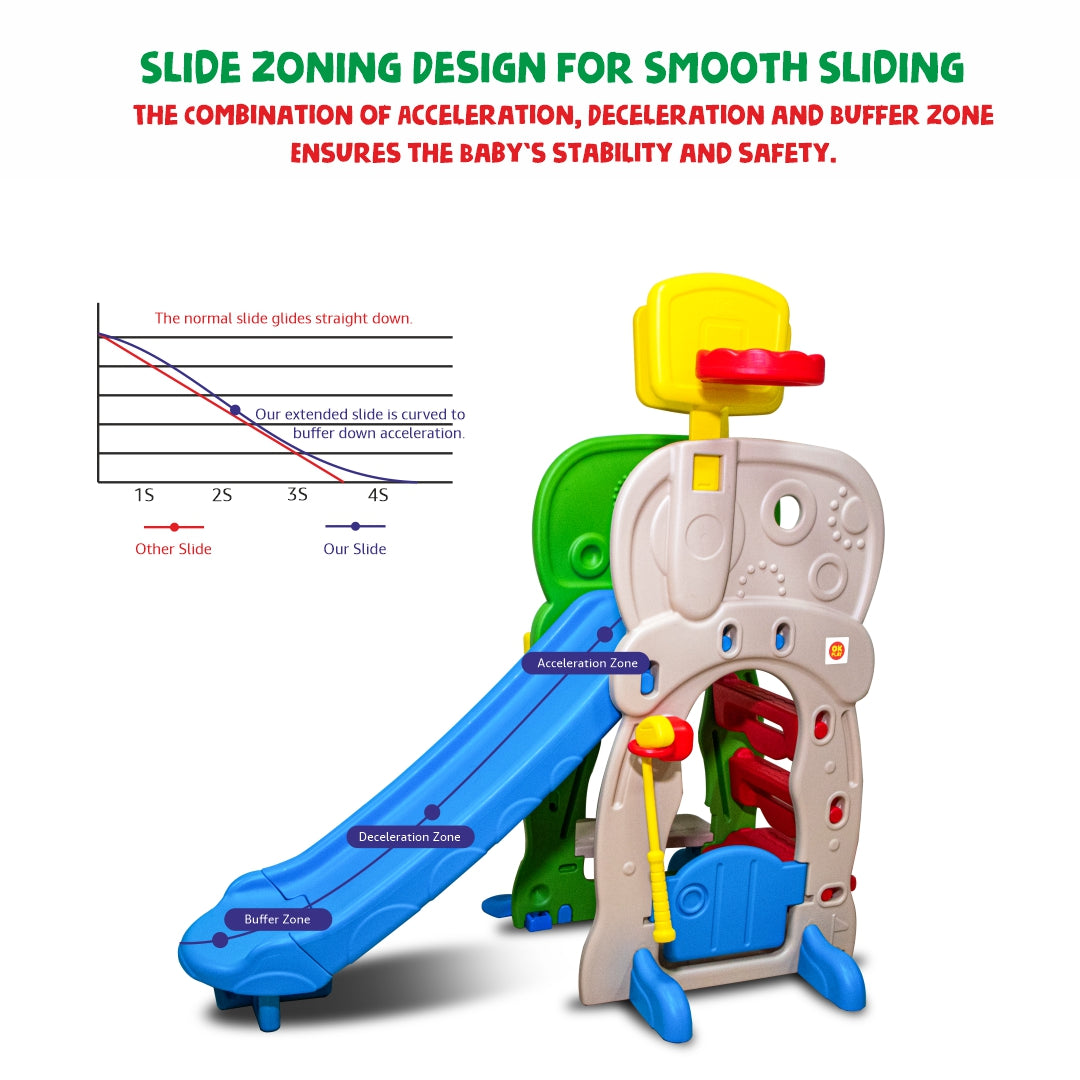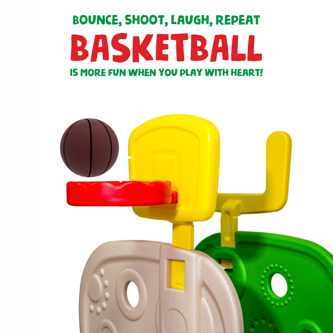 The OK PLAY Activity Clubhouse is a one-stop play solution packed with fun and learning! This all-in-one playset features a smooth slide, basketball hoop, baseball game, and ring toss—offering endless ways to play, all in a single toy. Designed to develop gross motor skills, hand-eye coordination, and active play, it keeps kids engaged while supporting their overall growth. Made from durable, child-safe plastic, it’s perfect for both indoor and outdoor use. With vibrant colors and exciting activities, the Activity Clubhouse turns everyday play into an adventure—bringing home the playground fun in one compact, easy-to-assemble unit!