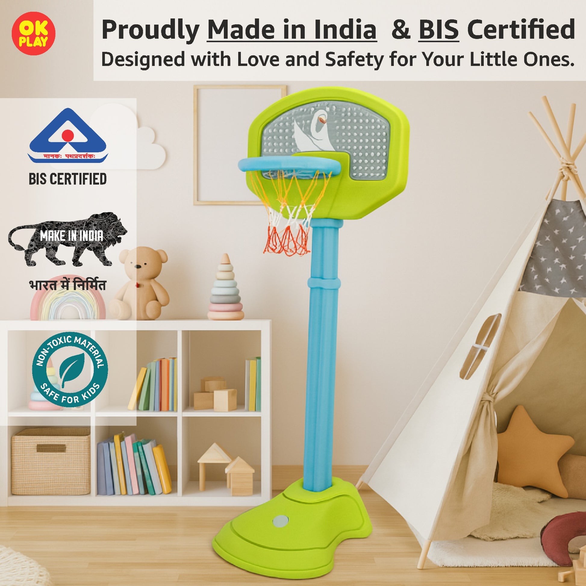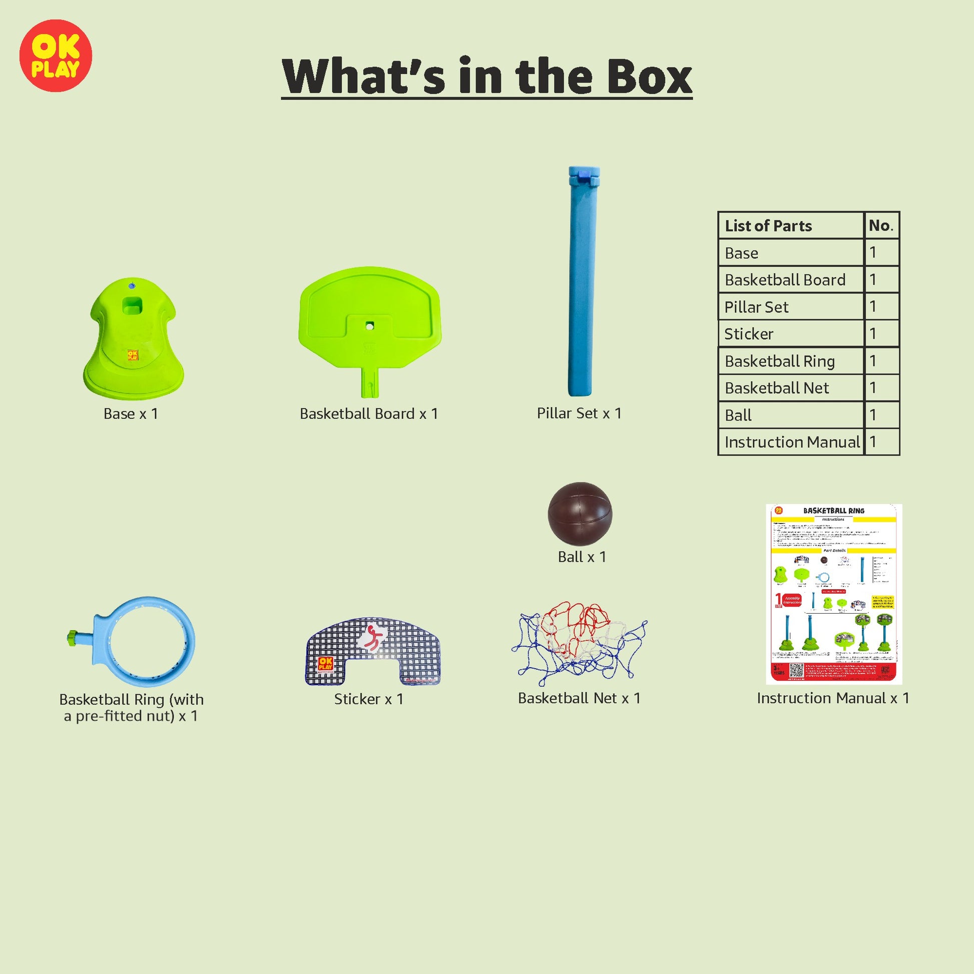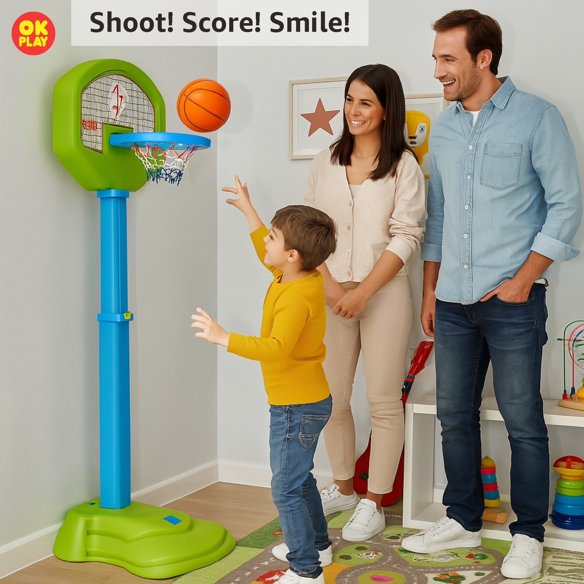 OK PLAY Basketball Ring | With Ball | Adjustable Height | Perfect for Home, School & Playground | Indoor & Outdoor Play | Sport Toy for Kid | Fun Activity | Perfect Gift | Sport Toy | Large