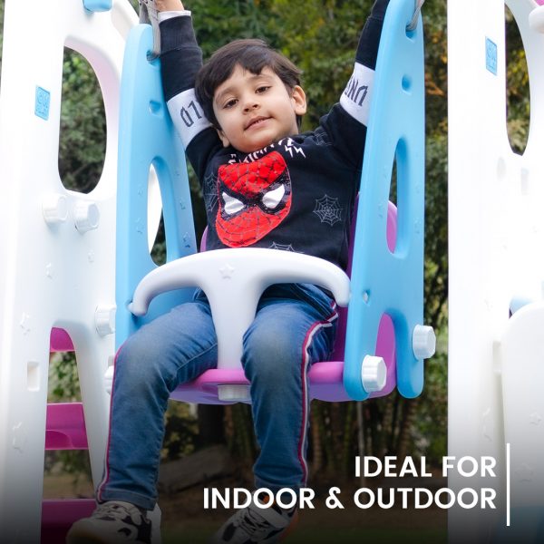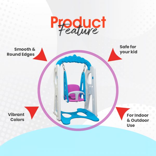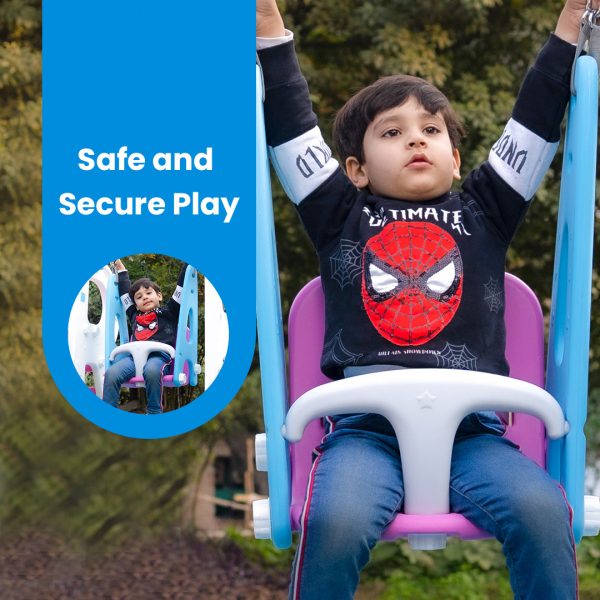 Bring joy and excitement to your child's playtime with this safe and durable swing set, designed for both indoor and outdoor fun. Featuring a sturdy frame, secure seating, and high-quality ropes, this swing ensures a smooth and comfortable ride while keeping safety a top priority. The high backrest and front safety guard provide extra support, making it ideal for toddlers and young kids. Crafted from non-toxic, weather-resistant plastic, it is built to withstand daily use, whether in a playroom, garden, or balcony. With an easy assembly process and included instruction manual, setting it up is hassle-free. This vibrant and engaging swing encourages active play, balance, and coordination, making it a must-have for every little adventurer!