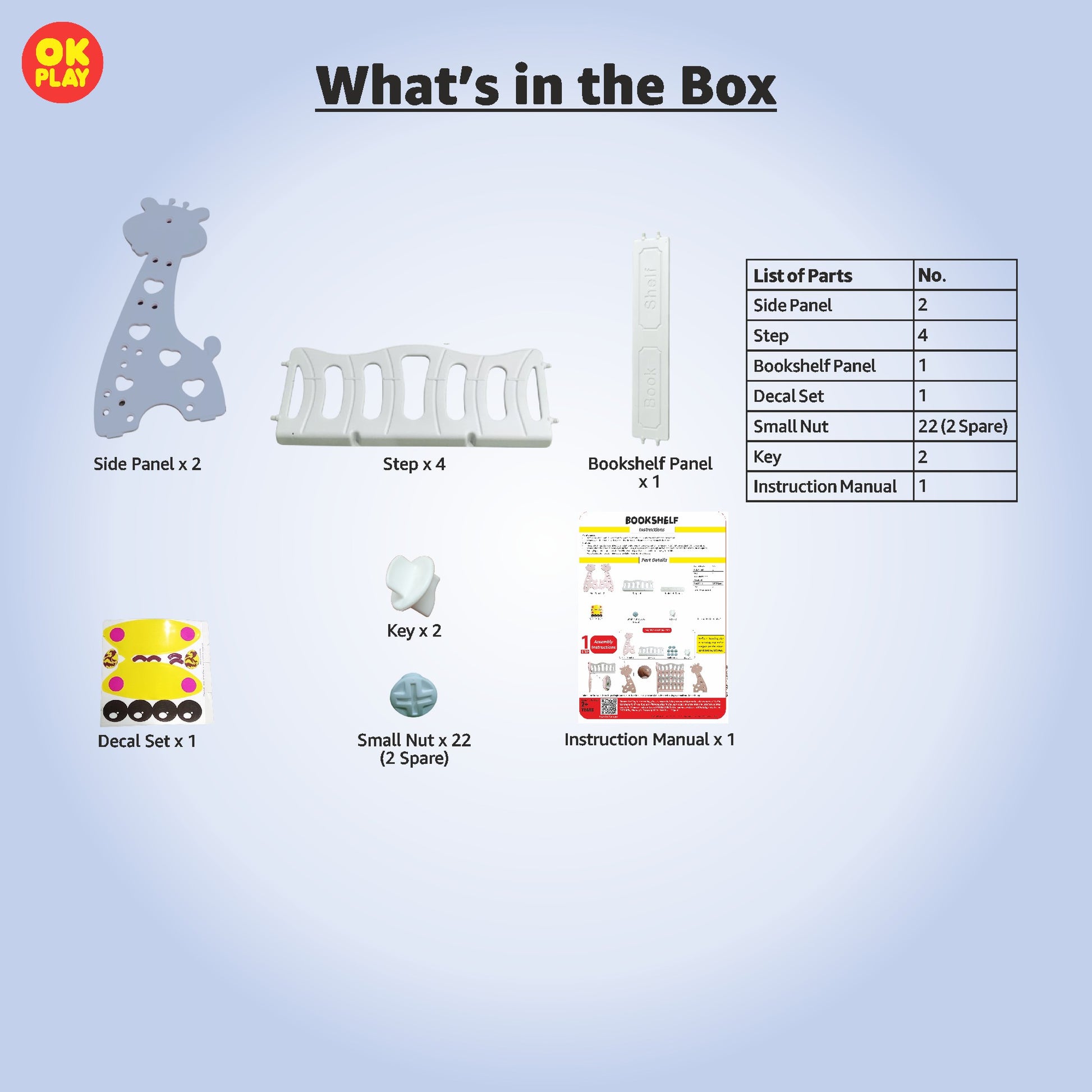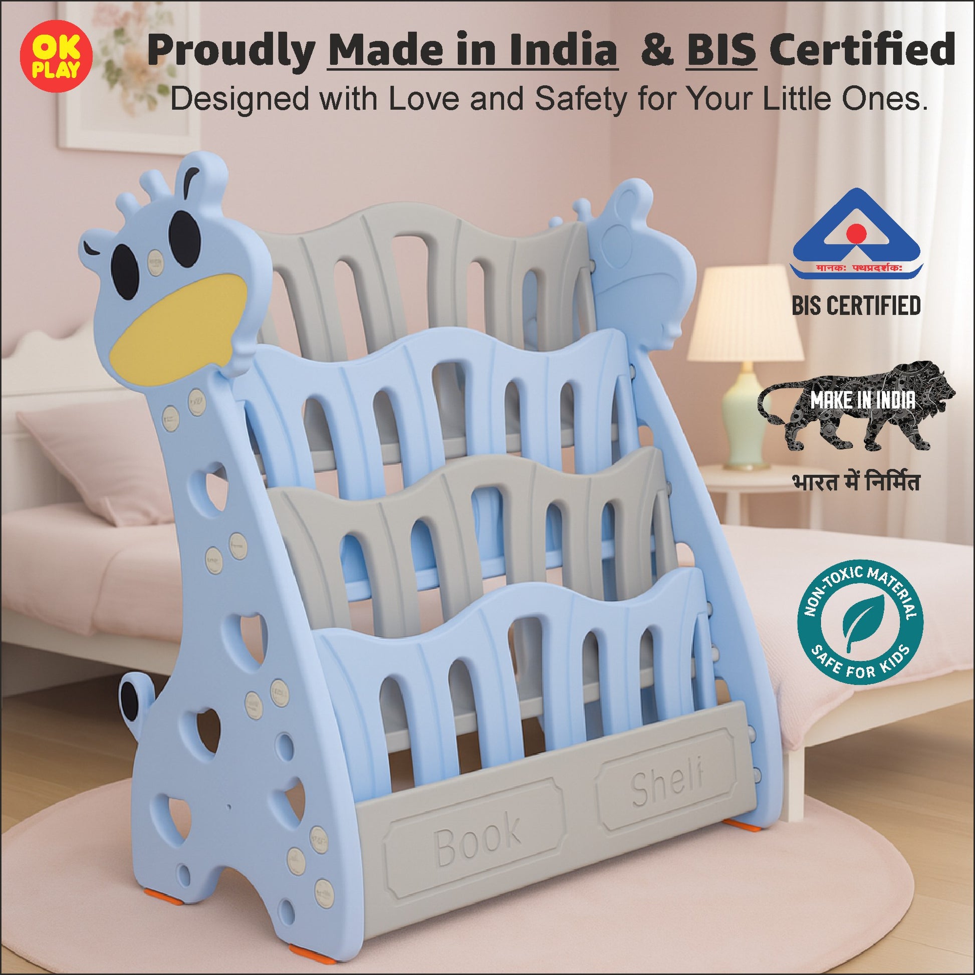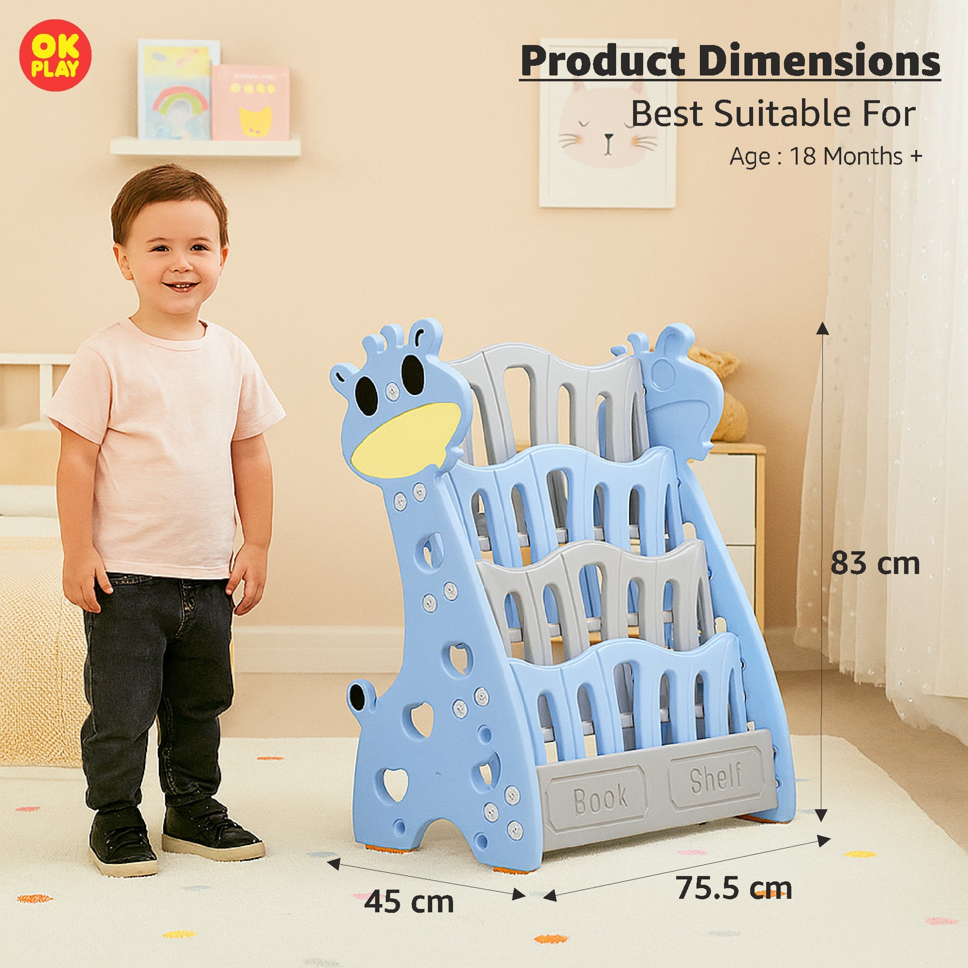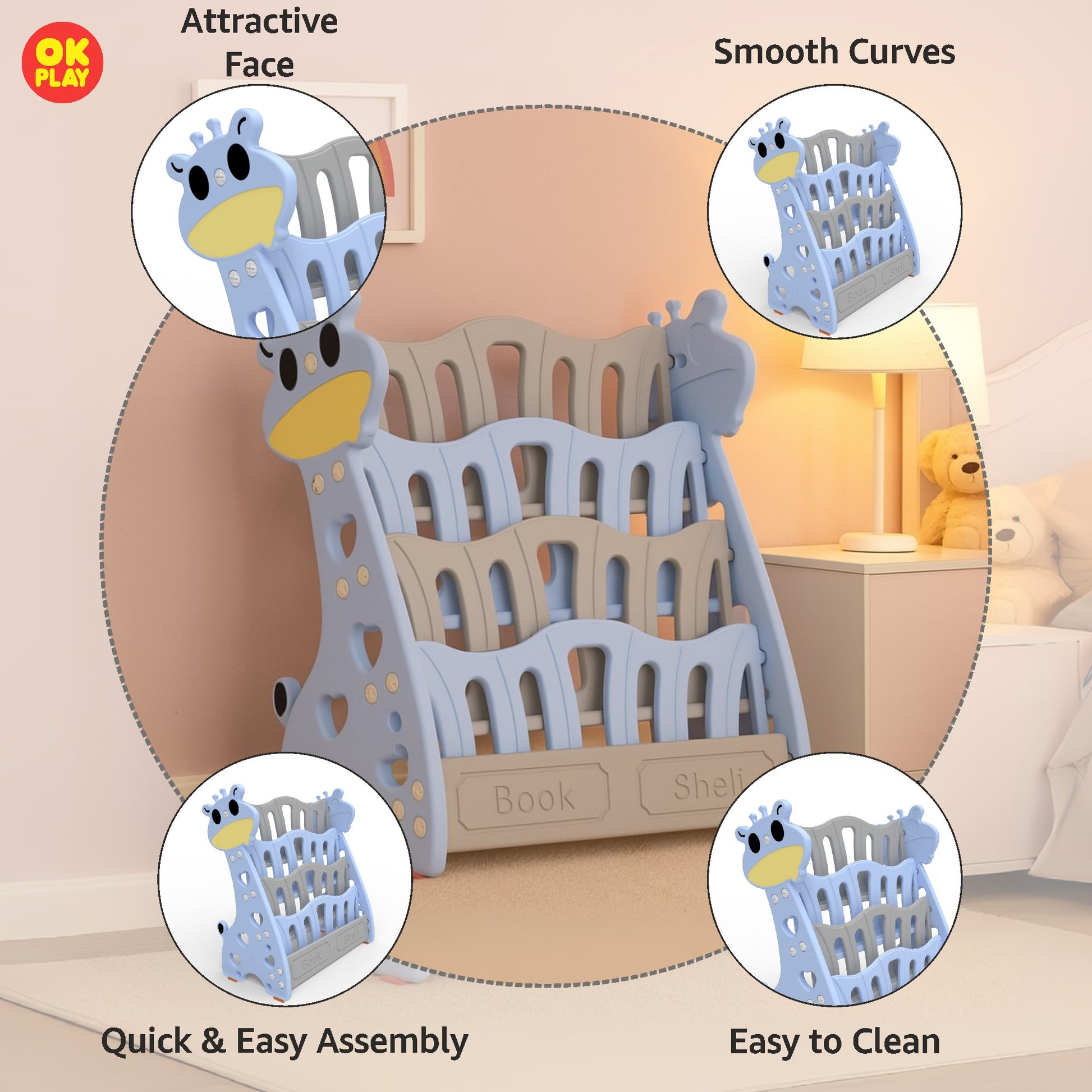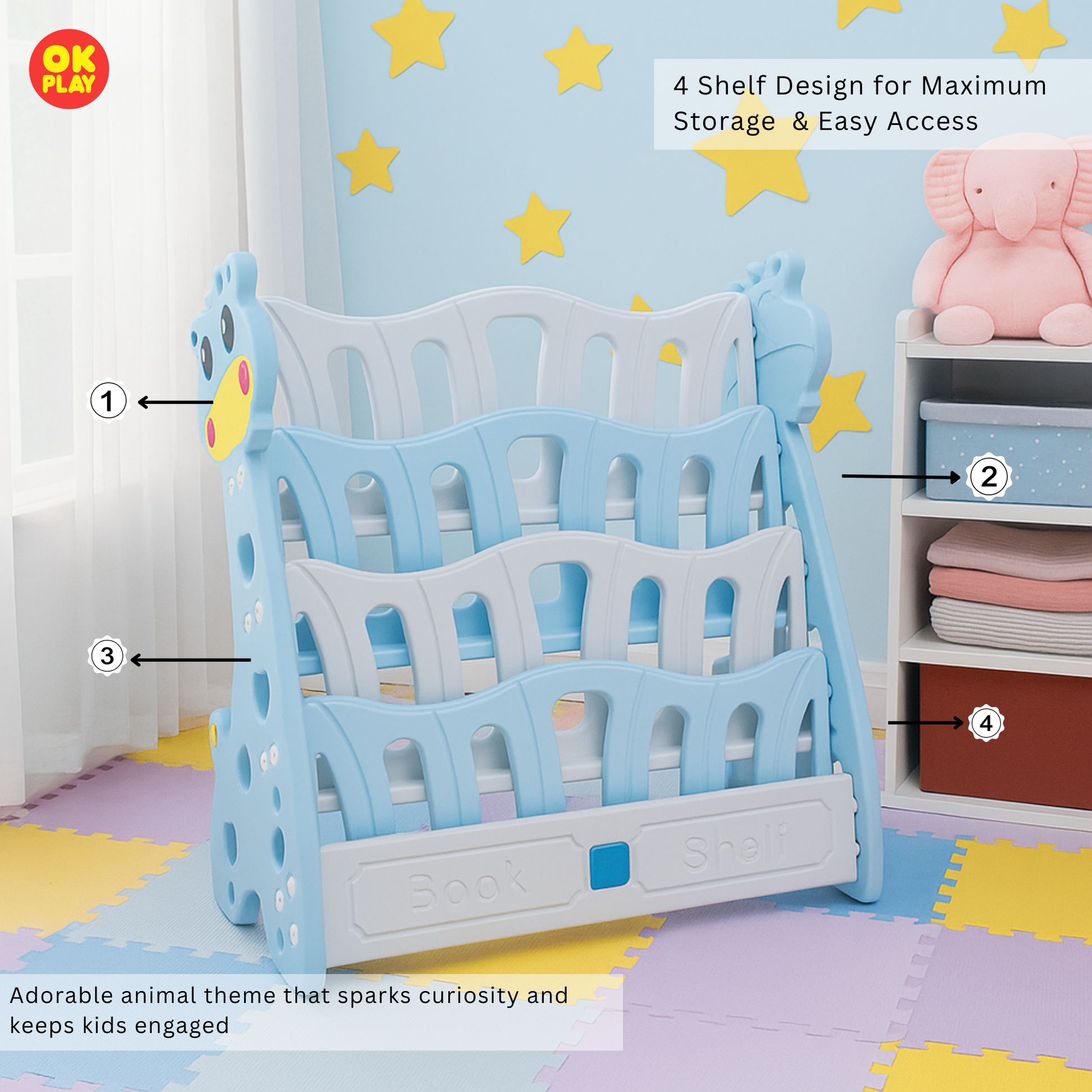 Ok Play Animal Theme Bookshelf for Kids | 4-Tier Display Rack | Storage | Organizing | Kids Bookcase | Easy Assembly | Compact | Portable | Perfect Gift | Medium