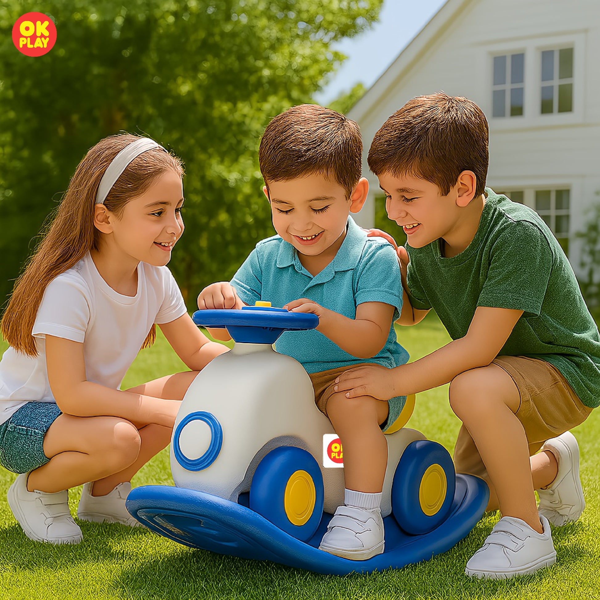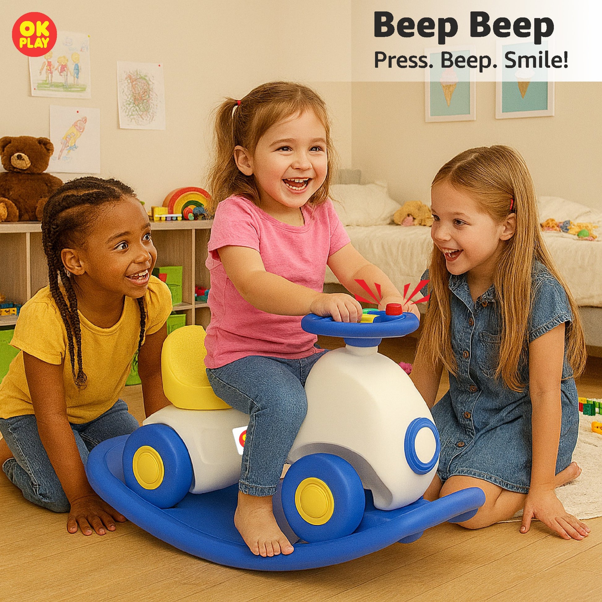 OK PLAY 3 in 1 Car Rocker Combo for Kids | Push On Ride On | Balancing Board | Backrest | Easy Grip | Anti Skid | Four Wheel | Indoor and Outdoor Play | Light-Weight | Perfect Gift | Car Theme
