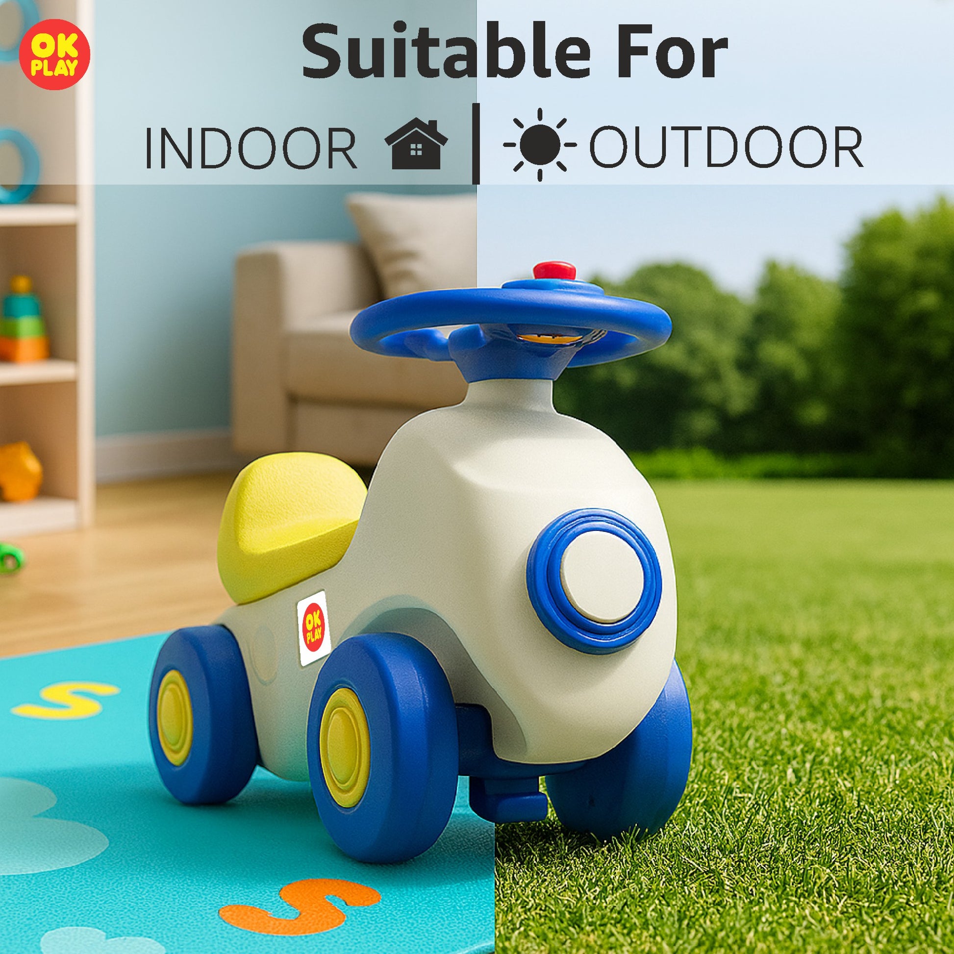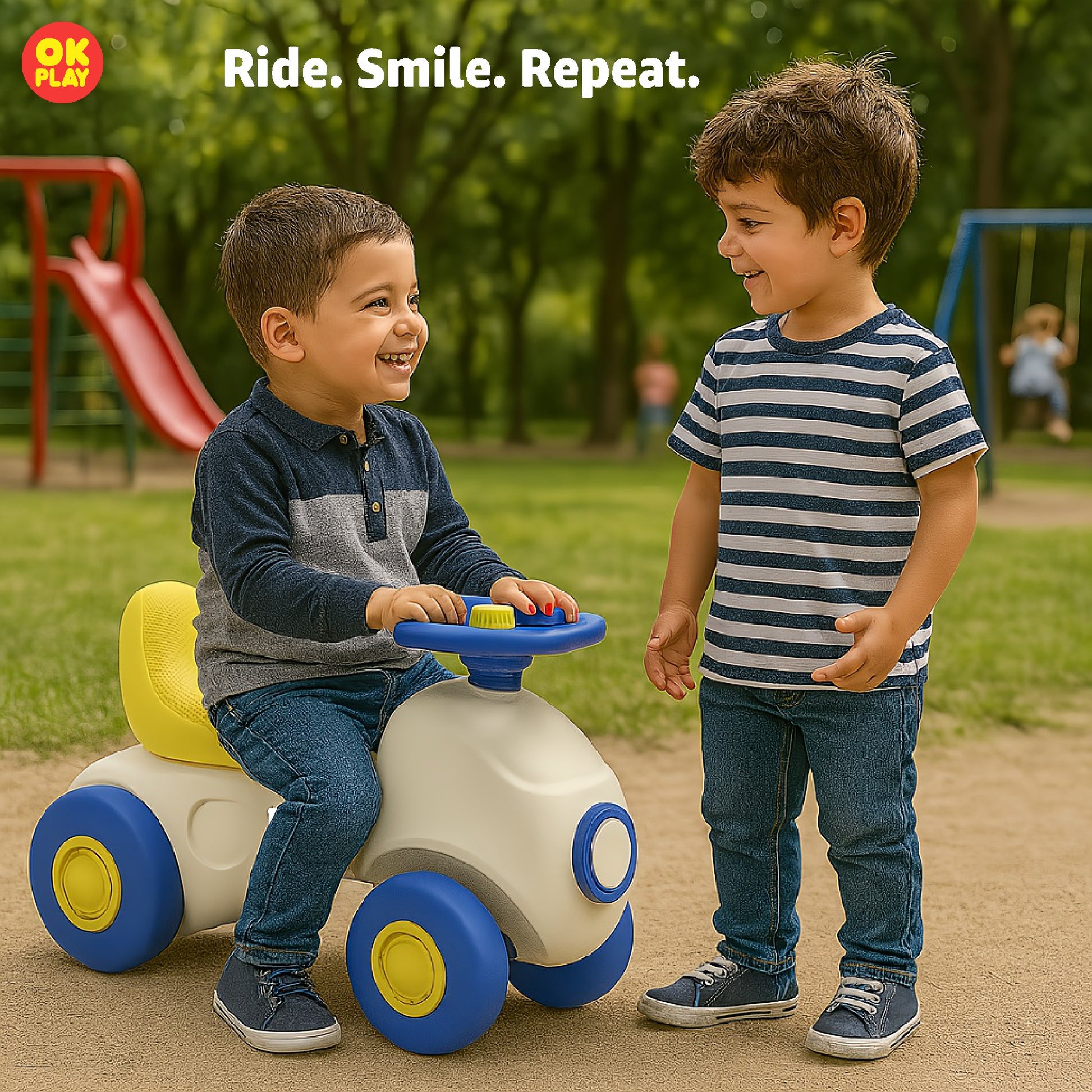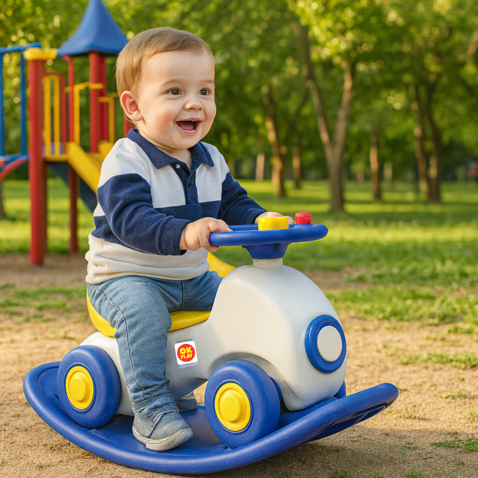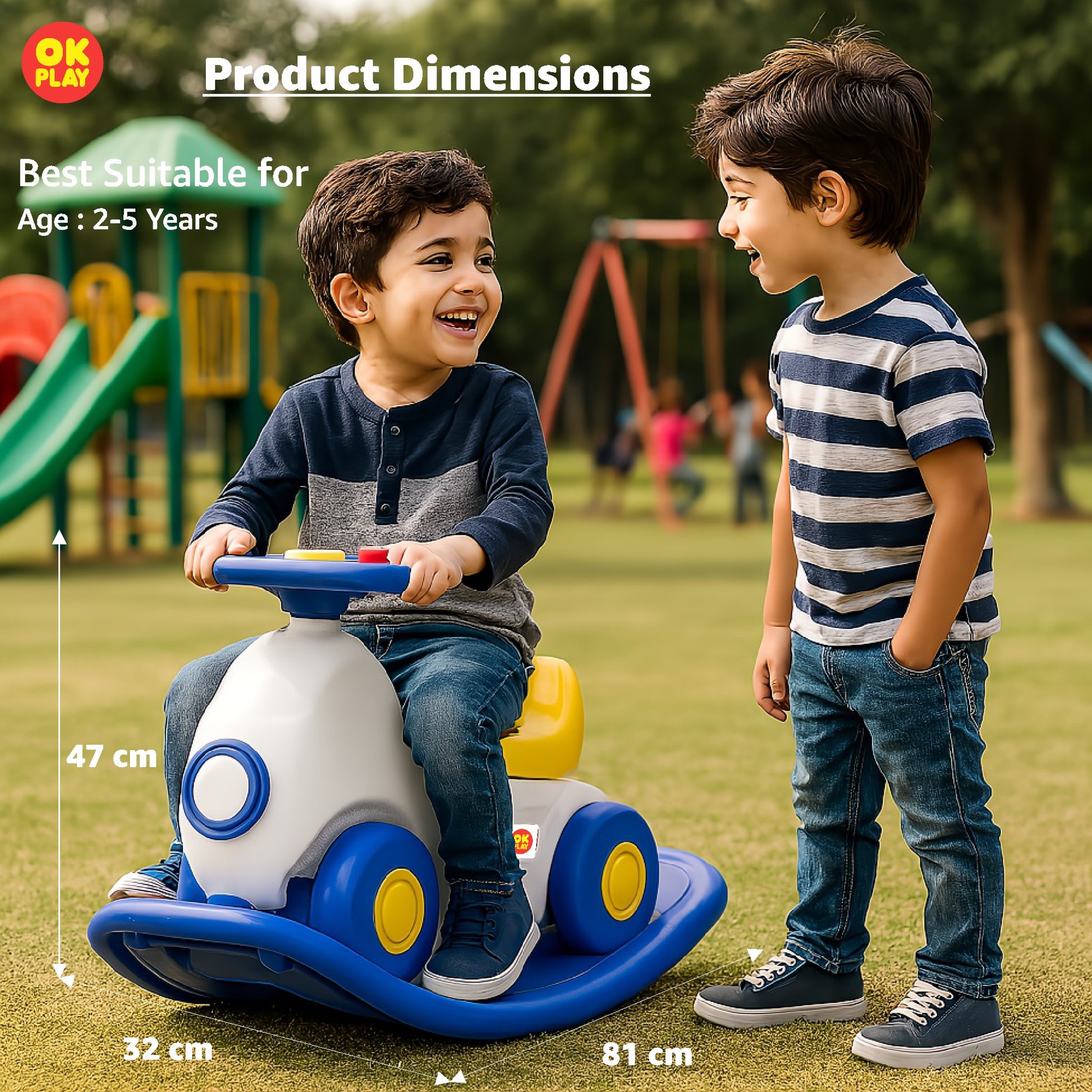 Suitable for Ages 2 Years & Above – The OK Play Car Ride-On with Rocker Combo is a versatile 2-in-1 toy designed to bring endless fun and active play to your little one. It functions as a rocker for younger toddlers, providing a gentle and soothing motion, and can be easily transformed into a ride-on car as your child grows, encouraging movement and independence.Made from high-quality, non-toxic, and durable plastic, this ride-on is built for long-lasting play. It features a comfortable seat, easy-grip handles, and an anti-skid base, ensuring maximum safety and stability. The smooth edges and lightweight design make it easy for children to handle and parents to move around.The bright and cheerful color combination, along with the car-inspired design, captures kids' attention, sparking imaginative play. This ride-on helps develop balance, coordination, and motor skills, making it an excellent choice for indoor and outdoor fun.Give your child the joy of rocking and riding with the OK Play Car Ride-On with Rocker Combo – a perfect companion for their early adventures!
