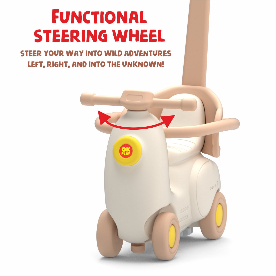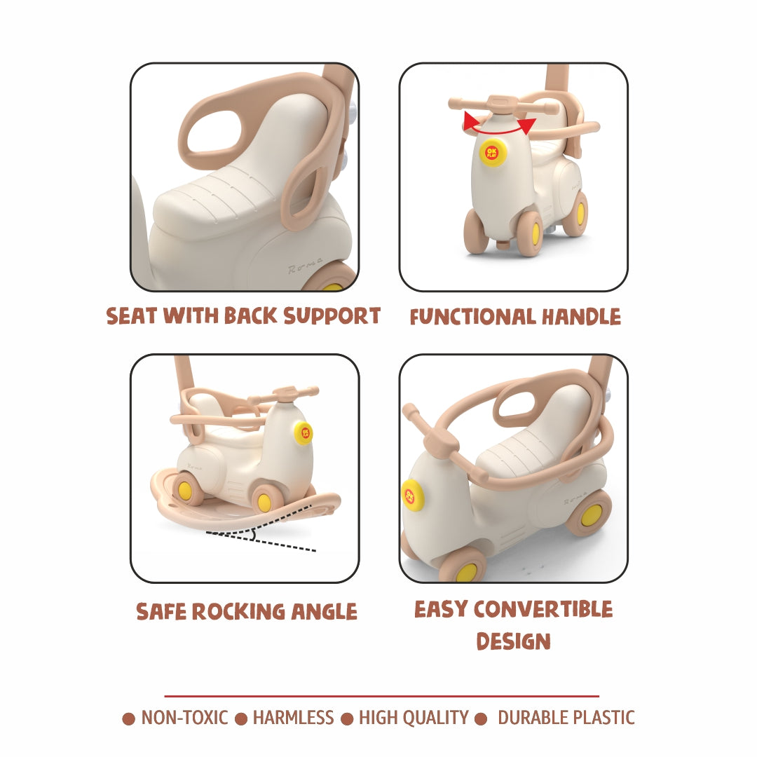 Suitable for Ages 2 Years & Above – The OK Play Classic Scooter Ride-On with Rocker Combo is a timeless 2-in-1 toy designed to deliver endless fun and active play for your little one. It functions as a rocker for younger toddlers, providing a soothing, gentle motion, and can easily be transformed into a classic scooter ride-on as your child grows, fostering movement and independence.Crafted from high-quality, non-toxic, and durable plastic, this ride-on is built for long-lasting play. It features a comfortable seat, easy-grip handlebars, and smooth-rolling wheels, ensuring a safe and stable ride. The lightweight design and smooth edges make it easy for children to handle and parents to move around.With its classic scooter-inspired design and bright, engaging colors, this ride-on sparks imaginative play and keeps kids entertained for hours. It helps develop balance, coordination, and motor skills, making it an excellent choice for both indoor and outdoor fun.Give your child the joy of rocking and scooting with the OK Play Classic Scooter Ride-On with Rocker Combo – a perfect companion for their early adventures!