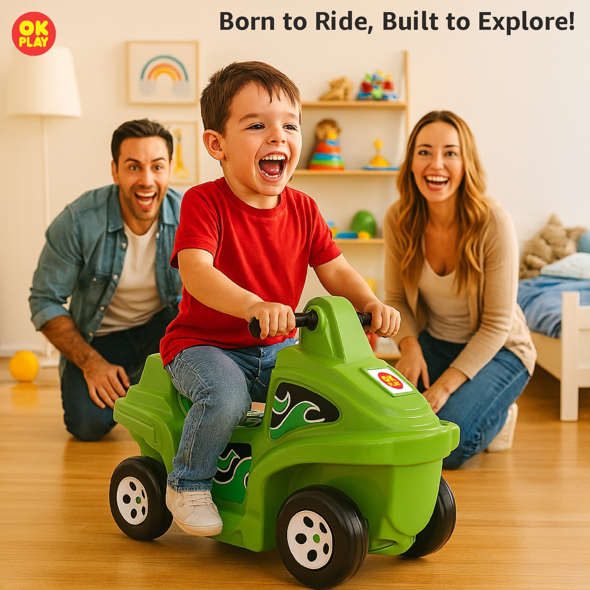 OK PLAY Coaster Car for Kids | Push On Ride On Car | Footrest | Backrest | Easy Grip | Four Wheel Ride | Anti Skid Bottom | Safe & Fun Activity Toy | Perfect Gift | Medium