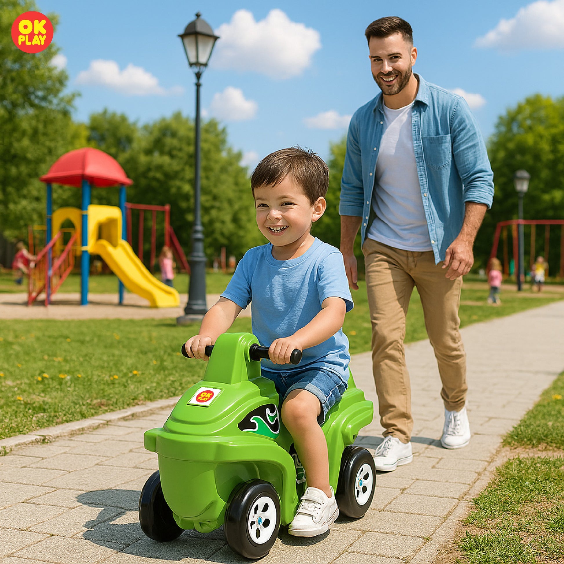 OK PLAY toys are perfect for both indoor and outdoor play, offering kids a safe, durable, and engaging play experience in any environment. Made from high-quality, non-toxic, and weather-resistant plastic, these toys are designed to withstand rough outdoor use while remaining lightweight and portable, making them easy to move and set up anywhere. Their sturdy yet lightweight construction ensures children can enjoy them in a playroom, backyard, garden, park, or school playground without hassle.