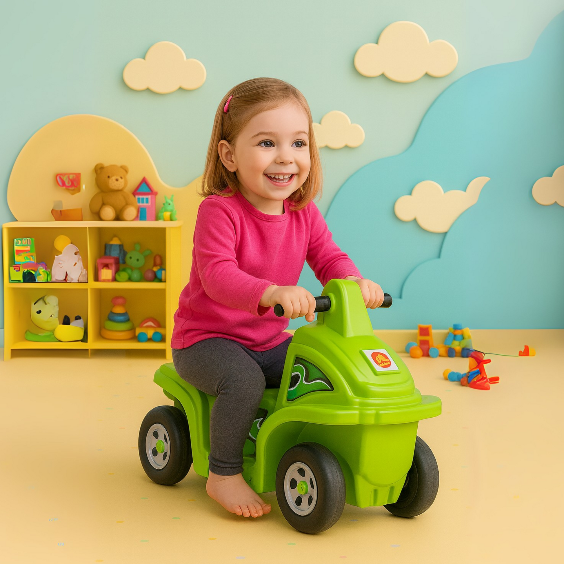 The OK Play Coaster Car is a thrilling ride-on toy designed to give kids a fun and exciting experience while enhancing their motor skills and coordination. Crafted from high-quality, non-toxic, and durable plastic, this coaster car is built for long-lasting safety and enjoyment.Its ergonomic design features a comfortable seat with easy-grip handles, ensuring a secure and stable ride for little adventurers. The sturdy wheels provide smooth movement, allowing kids to enjoy an effortless glide on the track. Whether used indoors or outdoors, the OK Play Coaster Car is perfect for active play and adventure.Ideal for kids aged 2 years and above, this vibrant and engaging ride-on car encourages independent play and confidence, making it a fantastic addition to any playroom, school, or playground.