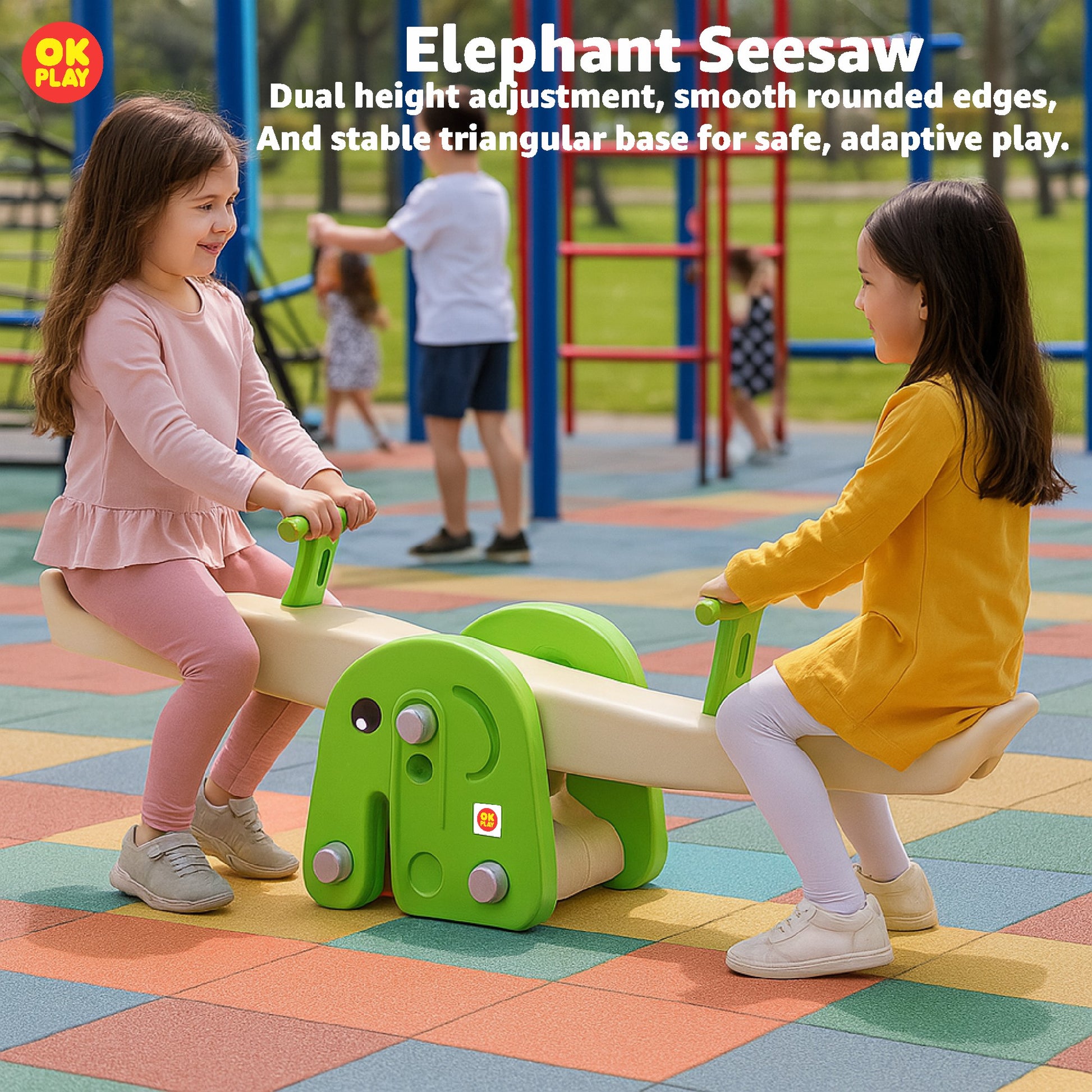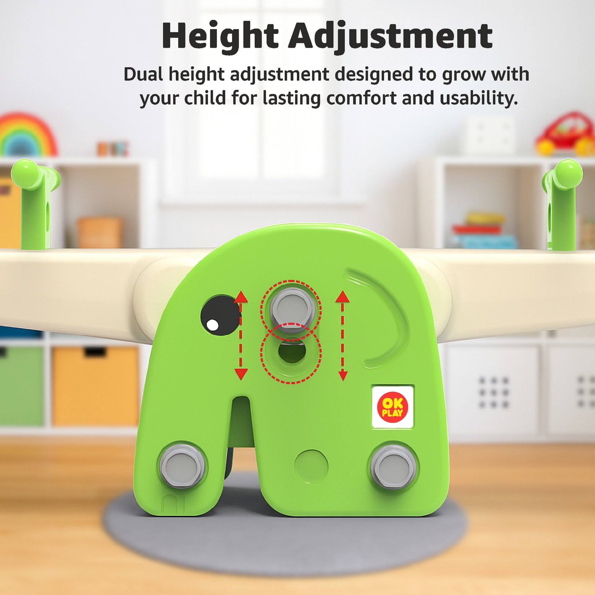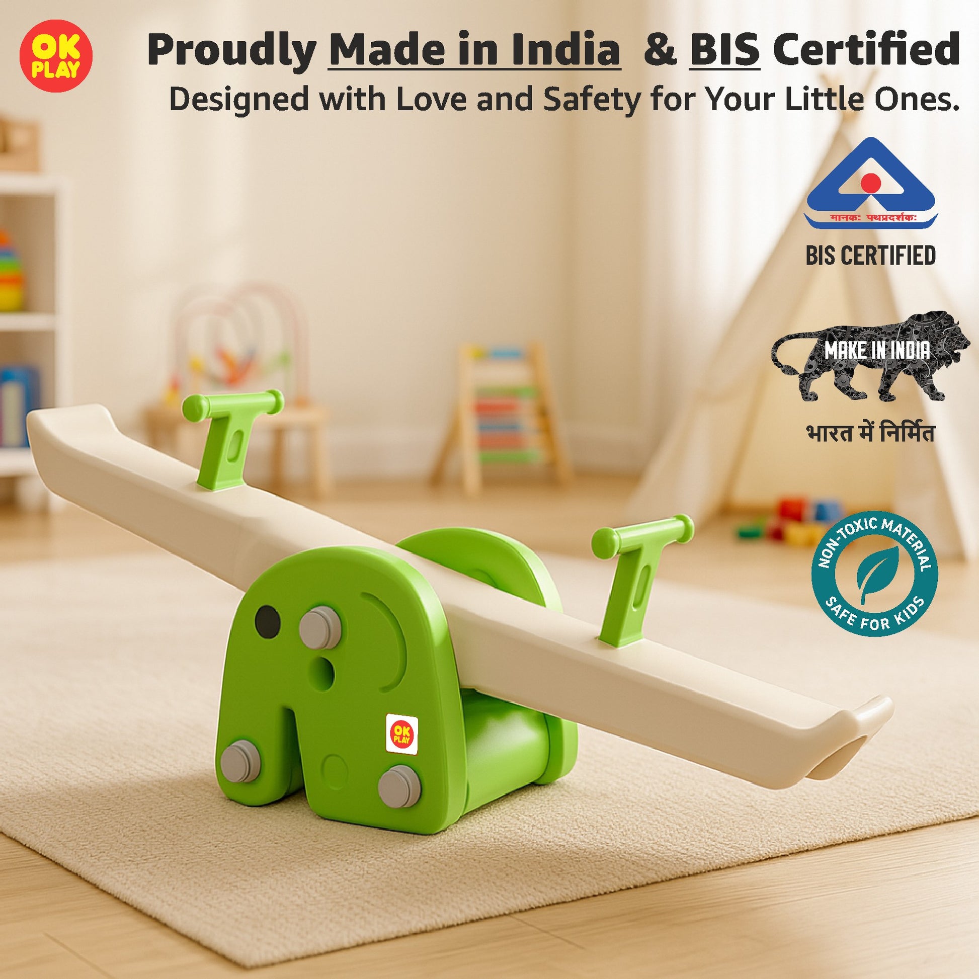 OK PLAY Elephant See Saw | Indoor & Outdoor Play | Anti skid Bottom | Easy Grip | Comfort Seat | Rounded Edges | Perfect Gift | Animal Theme