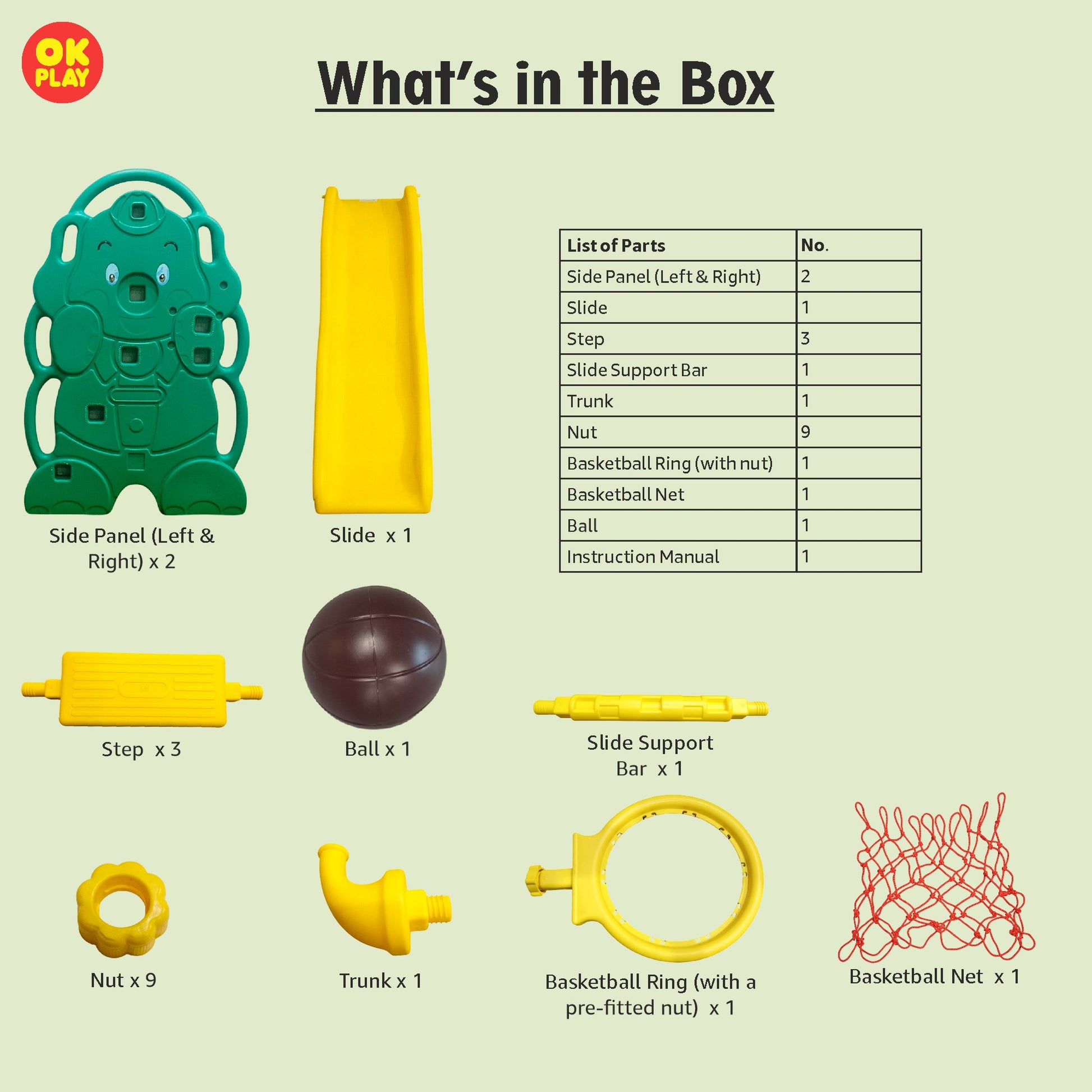 OK PLAY Elephant Slide with Basketball Ring | Indoor & Outdoor Play | Perfect Slide for Home, School & Playground | Easy Assembly | Safe & Fun Activity Toy | Perfect Gift for Boys & Girls | Animal Theme