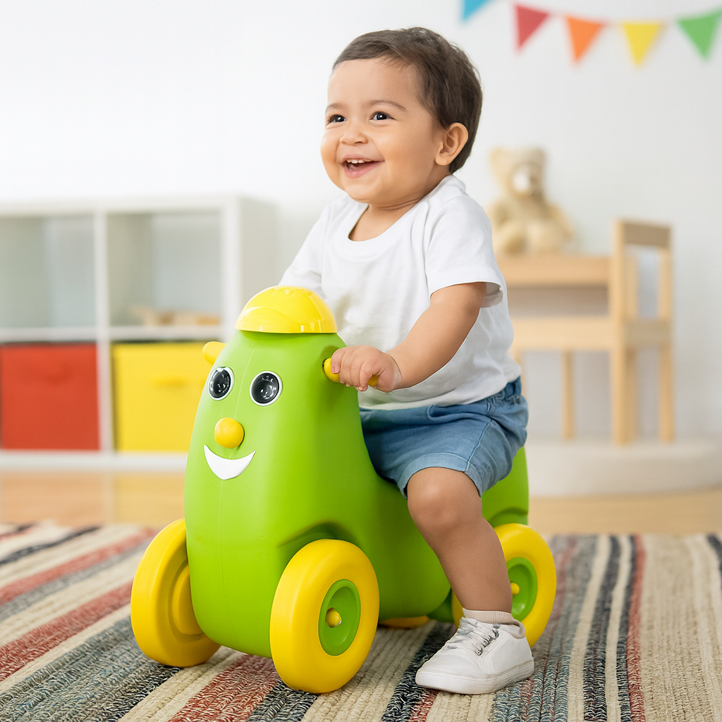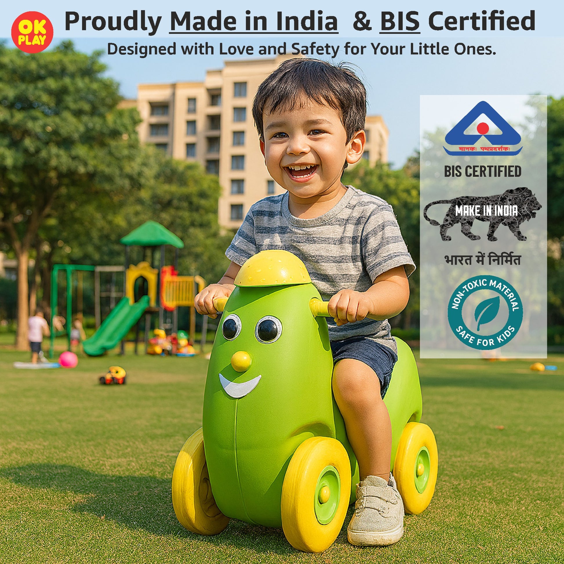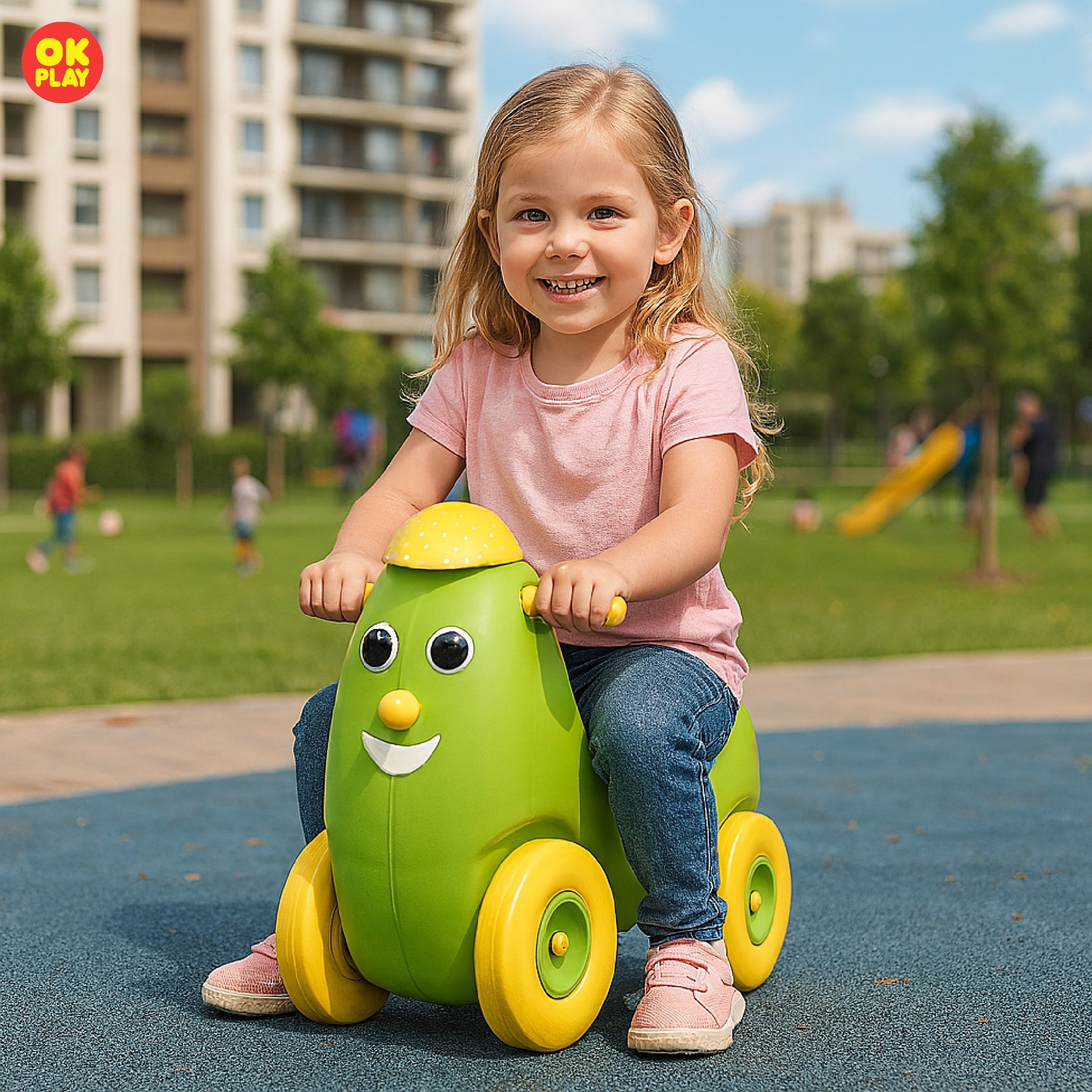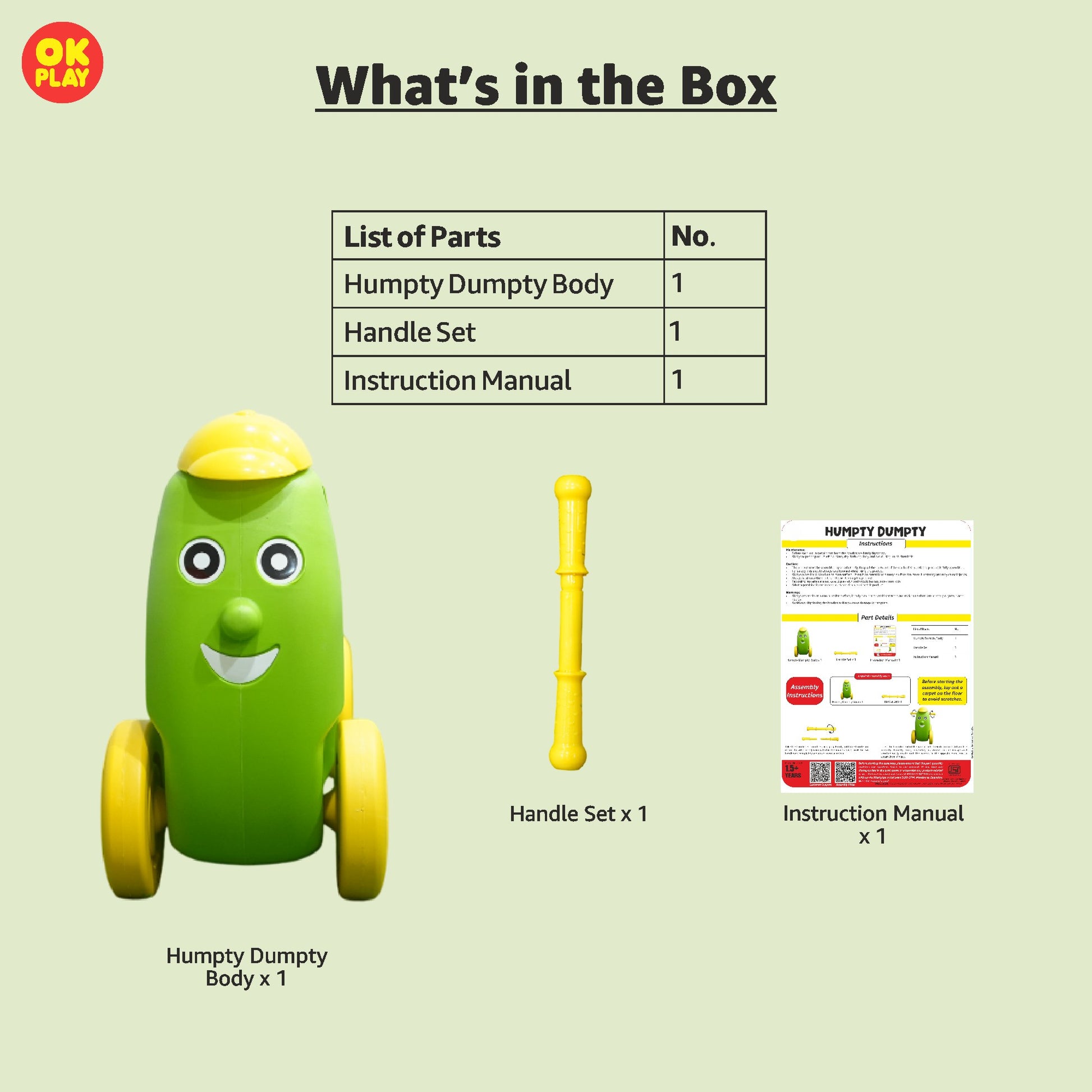 The OK Play Humpty Dumpty Ride-On is a fun and engaging push-and-ride toy designed to enhance a child's motor skills, balance, and coordination. Crafted from high-quality, non-toxic, and durable plastic, this ride-on is built to withstand hours of play while ensuring maximum safety for young riders.Shaped like the beloved nursery rhyme character Humpty Dumpty, this ride-on features an ergonomic design with a wide and sturdy seat, allowing toddlers to enjoy a comfortable ride. The easy-grip handlebars and smooth-rolling wheels enable effortless movement, helping children develop confidence in mobility.Designed for kids aged 1.5 years and above, the Humpty Dumpty Ride-On is lightweight yet stable, making it ideal for both indoor and outdoor play. Its bright and cheerful color combination adds to its appeal, making it a delightful companion for your child’s playtime adventures.Encouraging active play and independent movement, the OK Play Humpty Dumpty Ride-On is perfect for toddlers who are learning to push, balance, and ride while having endless fun.