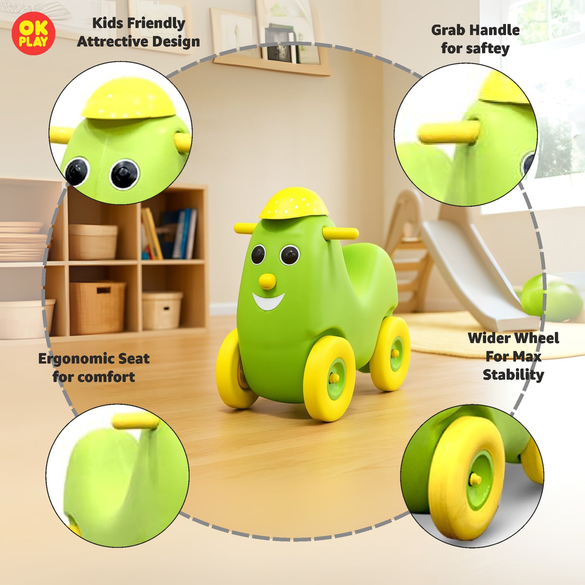 OK PLAY Humpty Dumpty| Push On Ride for Kids | Curved Seat | Backrest | Easy Grip | Four Wheel | Lightweight | Animal Theme | Indoor Outdoor Play | Safe & Fun Activity Toy | Perfect Gift
