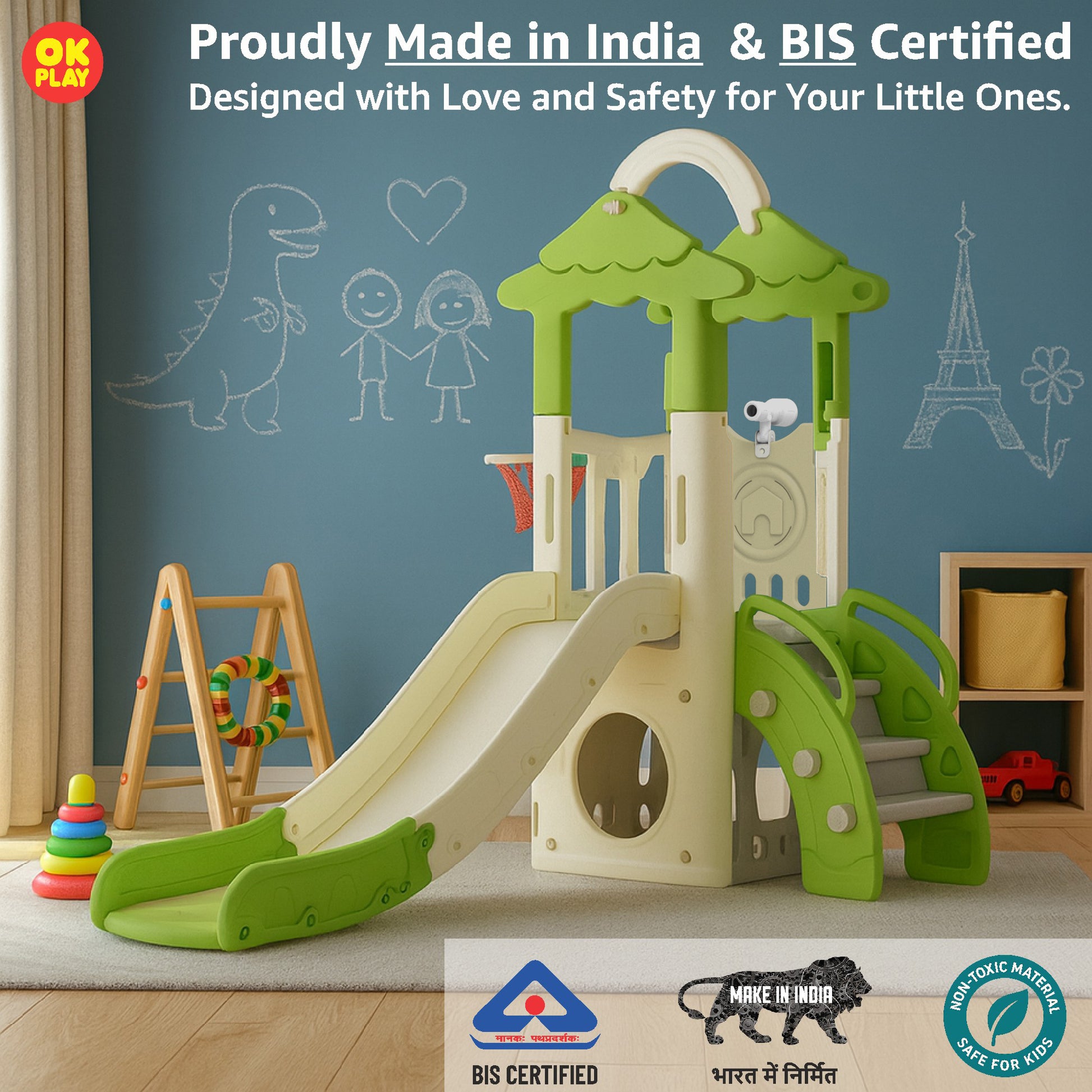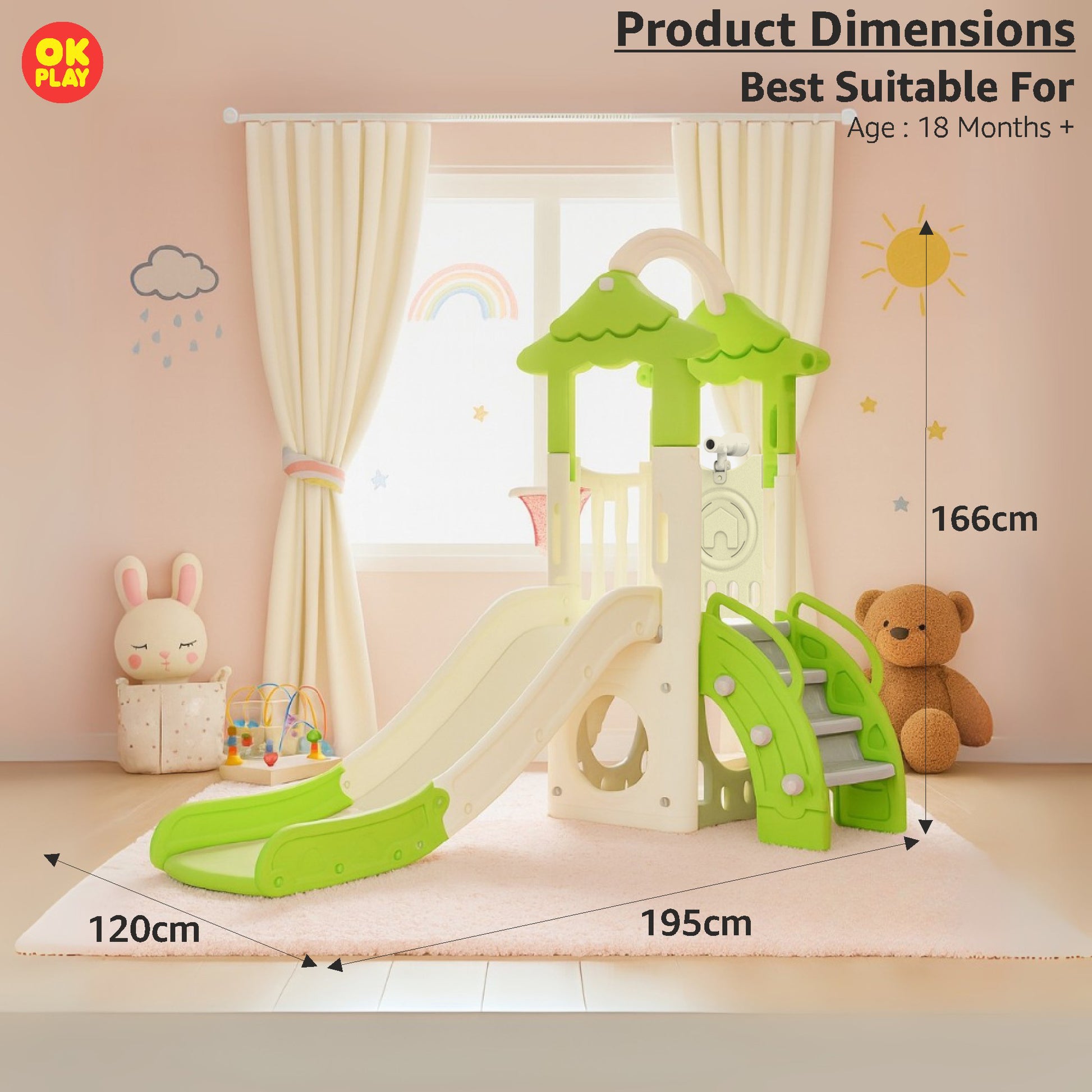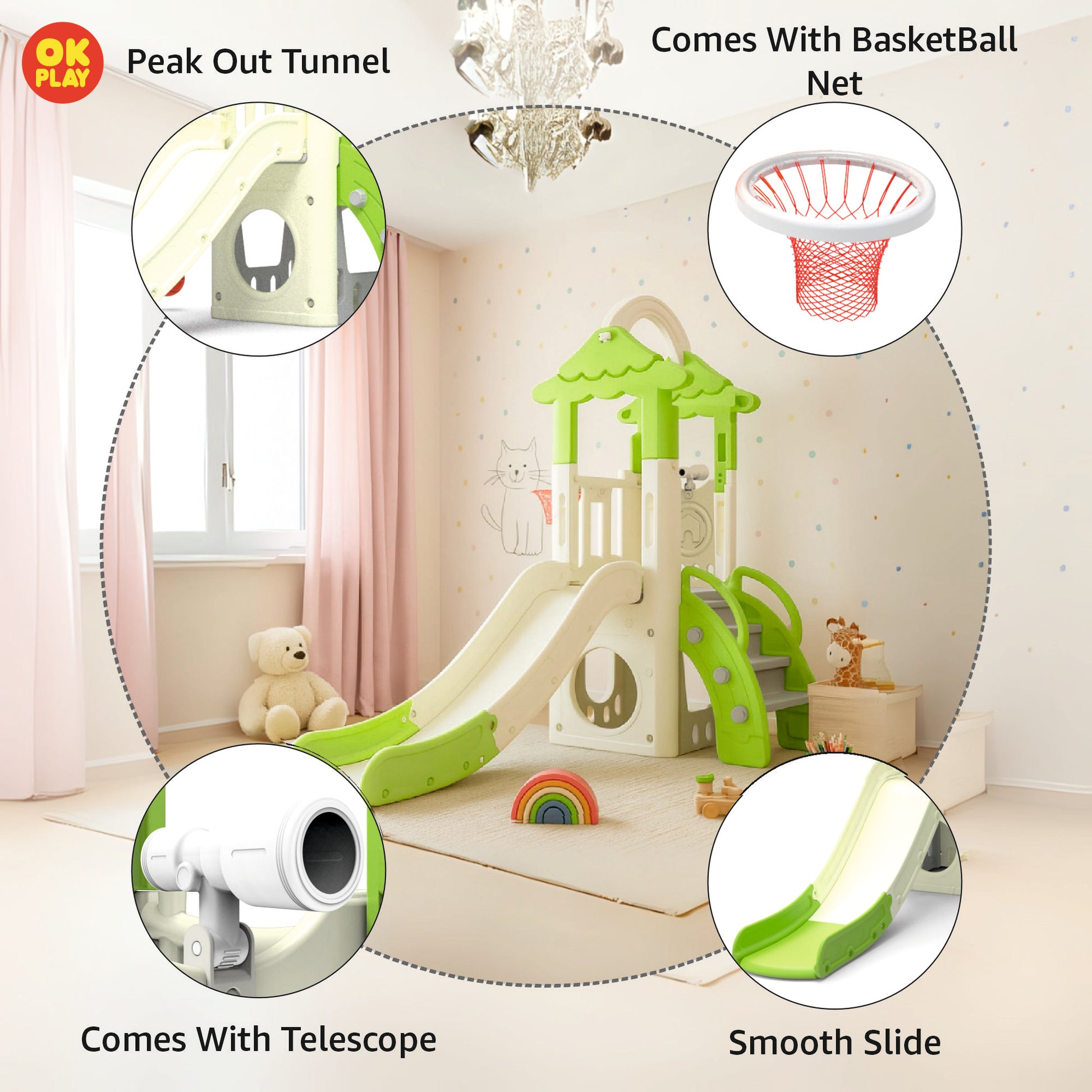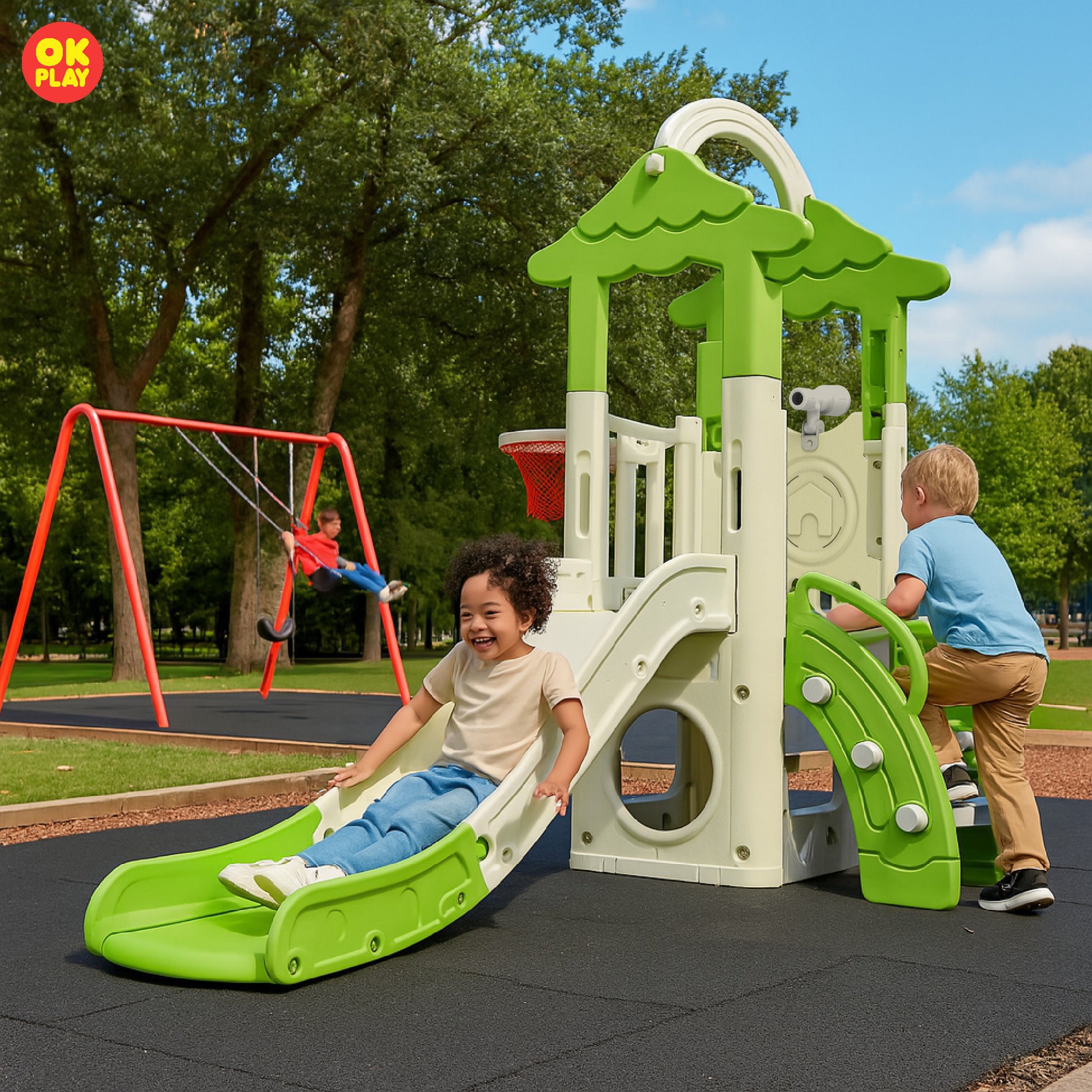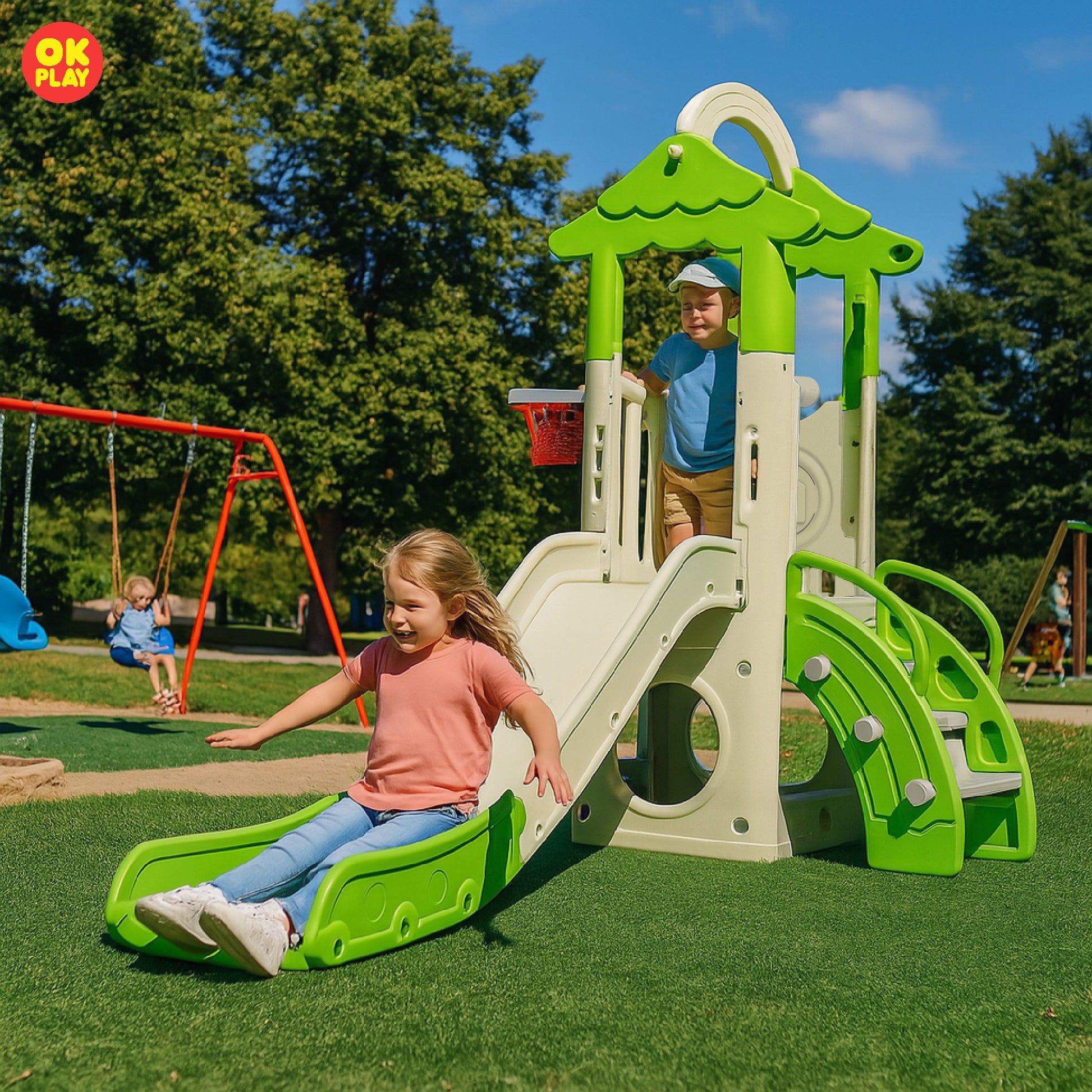 OK PLAY toys are perfect for both indoor and outdoor play, offering kids a safe, durable, and engaging play experience in any environment. Made from high-quality, non-toxic, and weather-resistant plastic, these toys are designed to withstand rough outdoor use while remaining lightweight and portable, making them easy to move and set up anywhere. Their sturdy yet lightweight construction ensures children can enjoy them in a playroom, backyard, garden, park, or school playground without hassle.