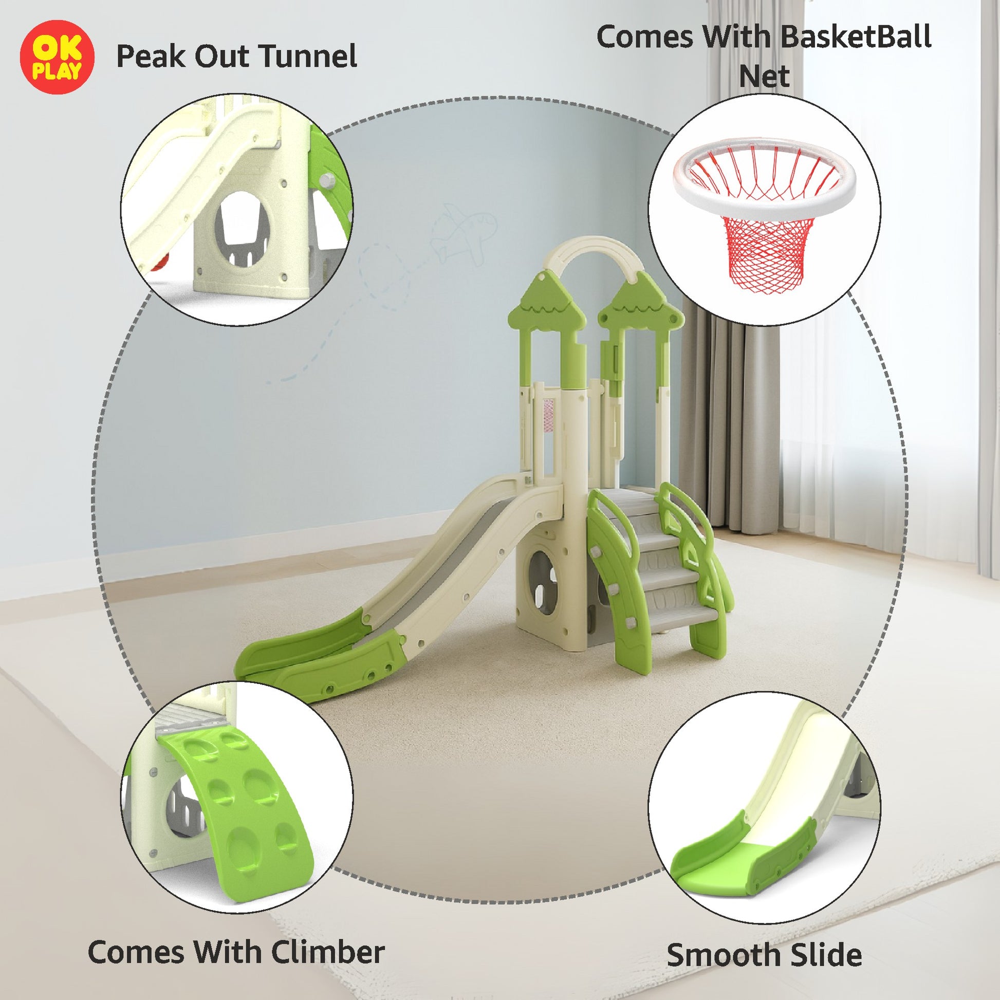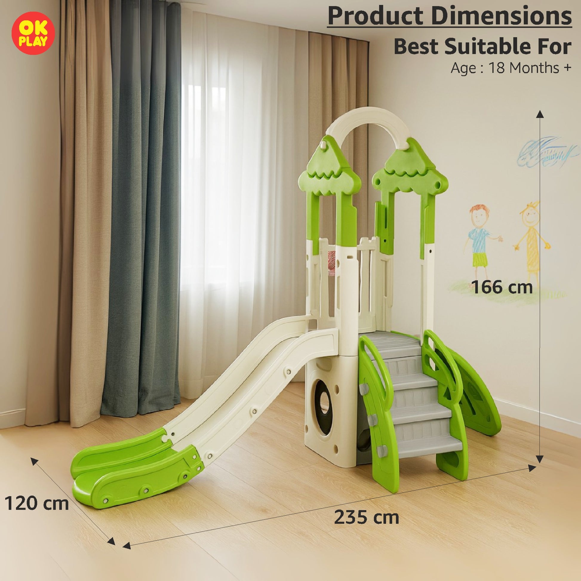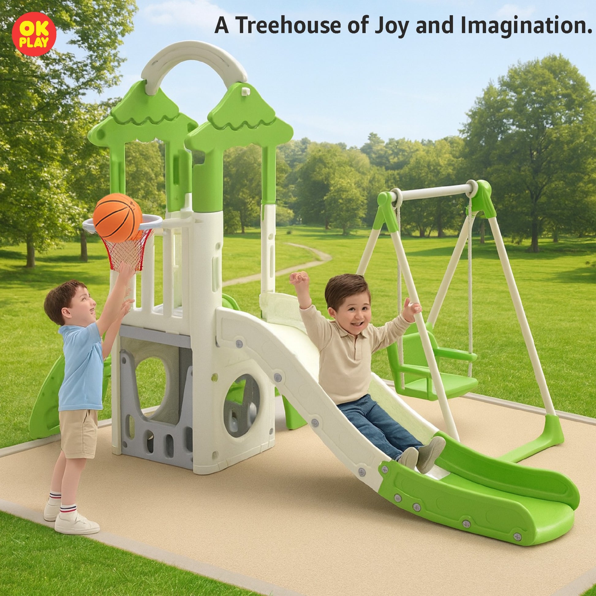 OK PLAY Little Tree House Playground Playset | with Slide & Basketball Hoop for Kids | Perfect for Home & School Safe & Modern Design | Indoor & Outdoor Use | Perfect Gift