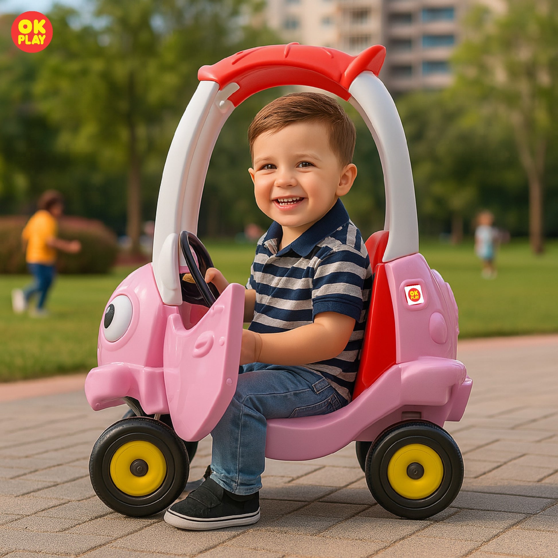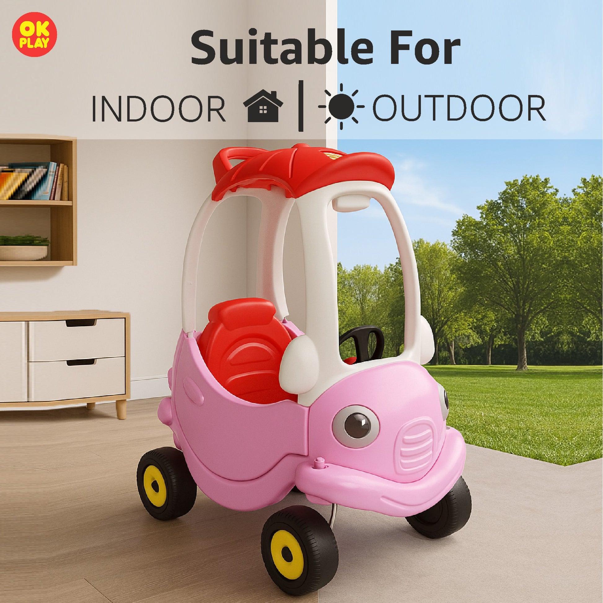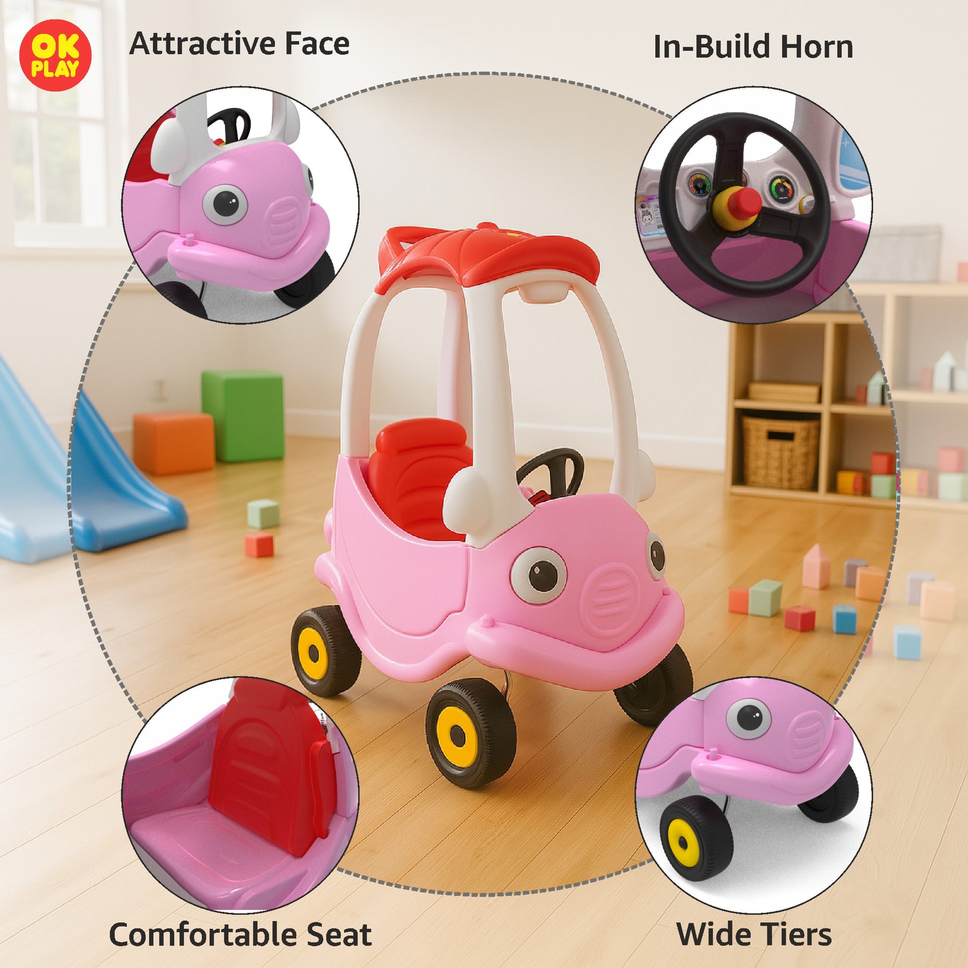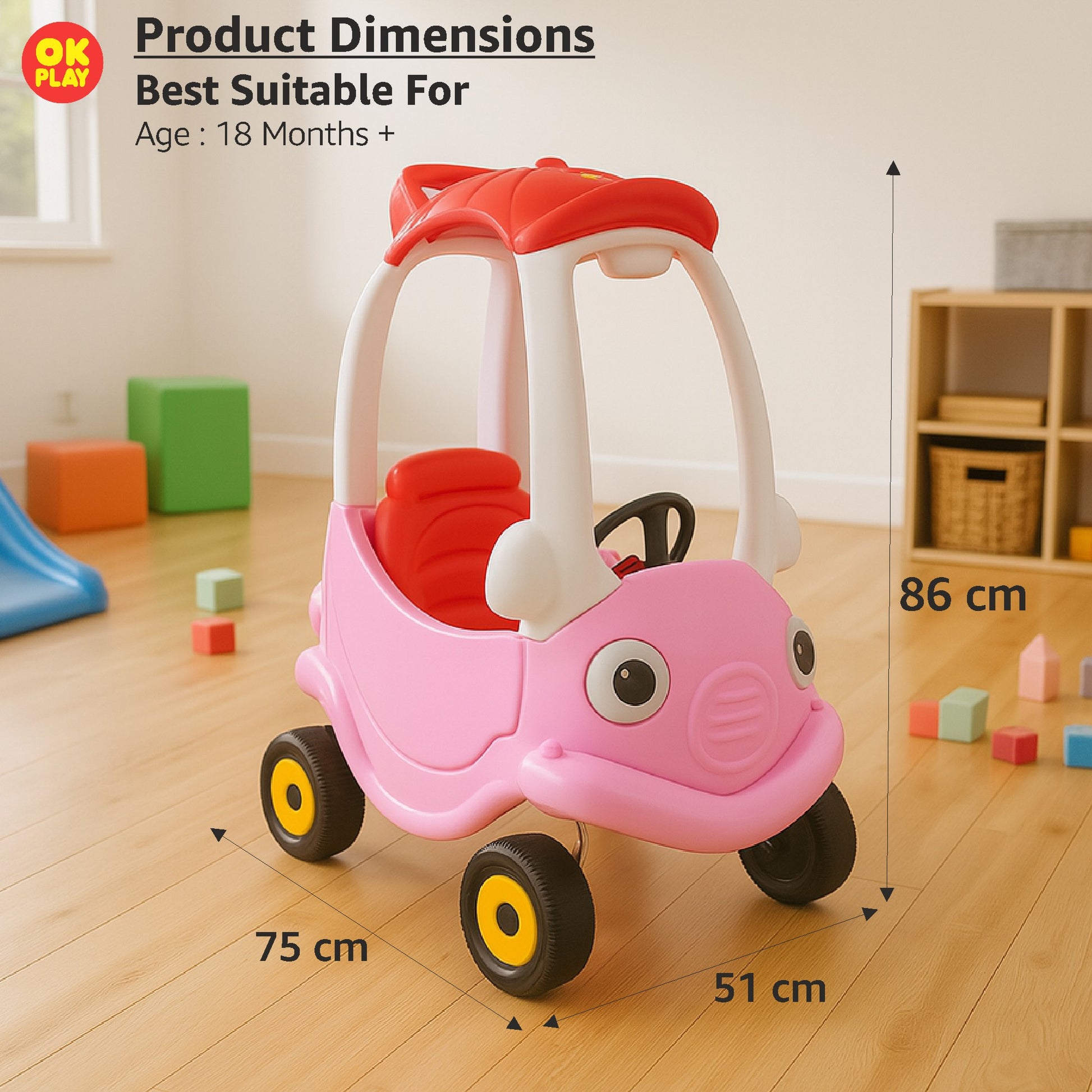 OK PLAY Miss Coupe Car | Ride On & Push On Car | with Steering Wheel | Doors on Both side | Round Edges | Indoor & Outdoor Play | Perfect for Home, School & Playground | Perfect Gift