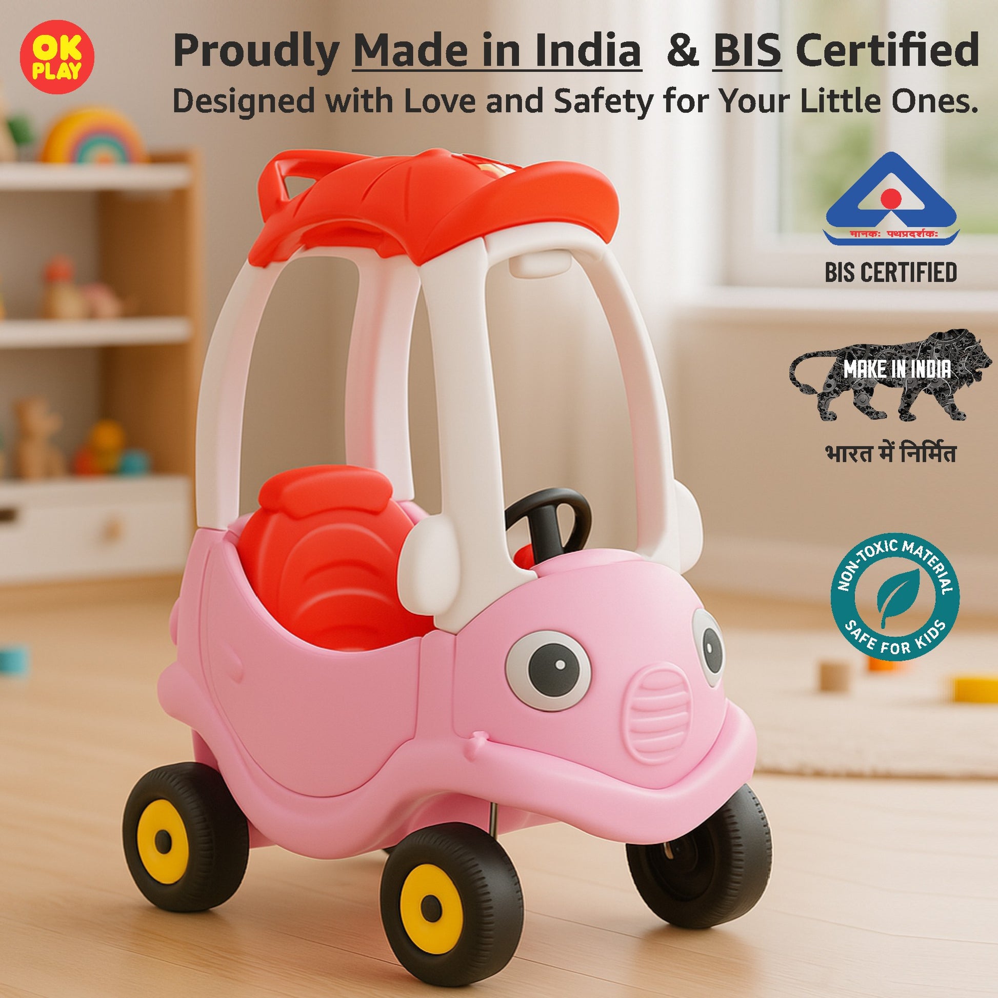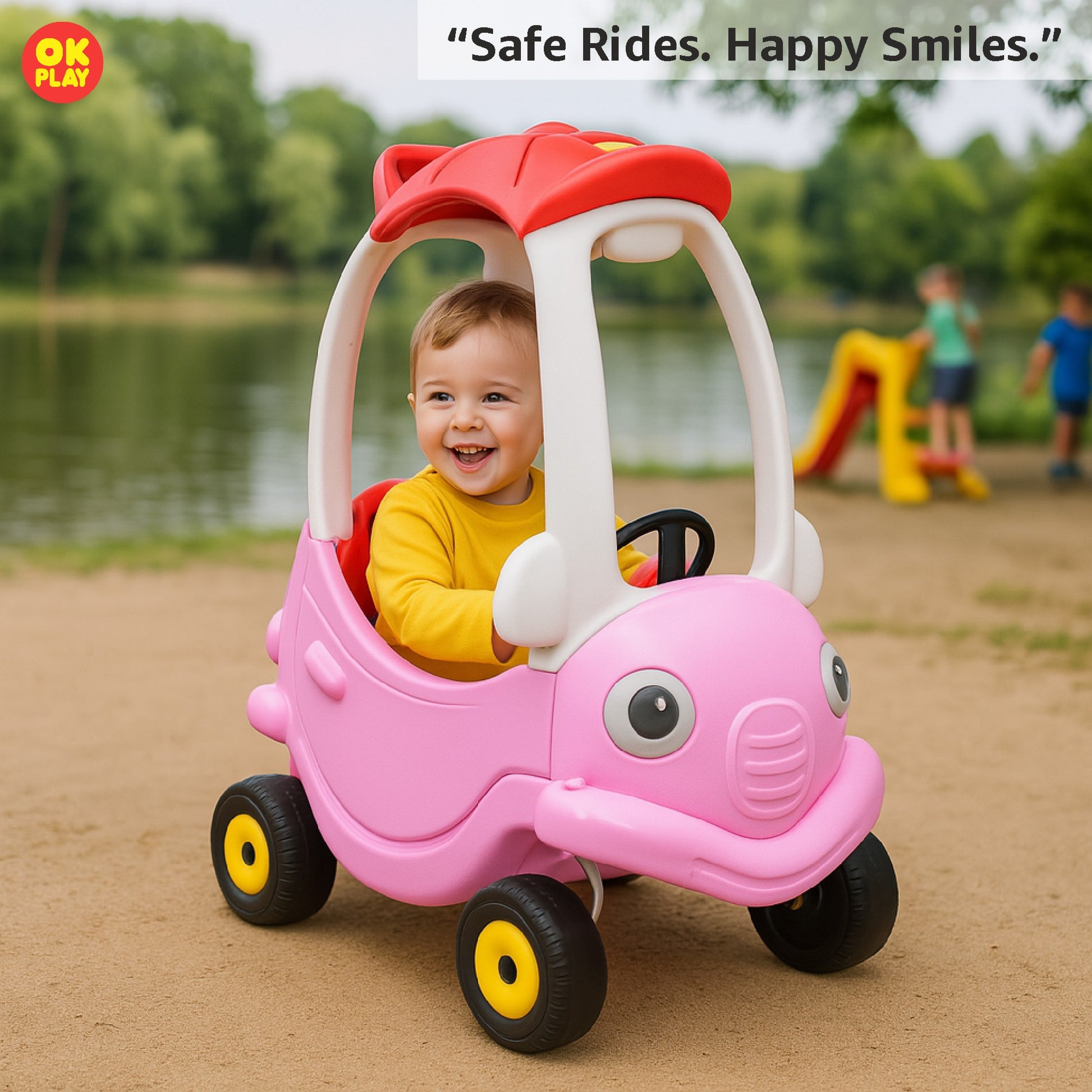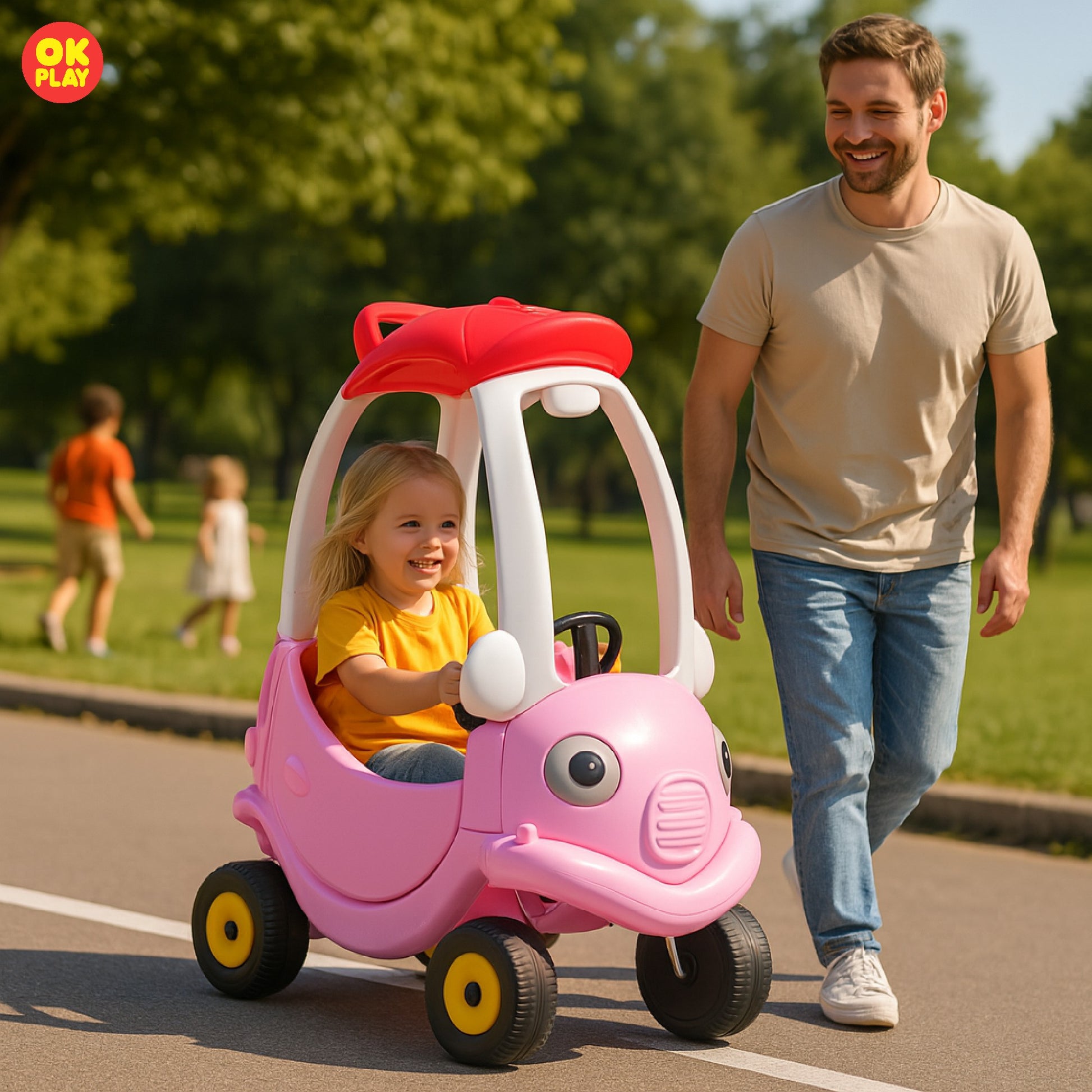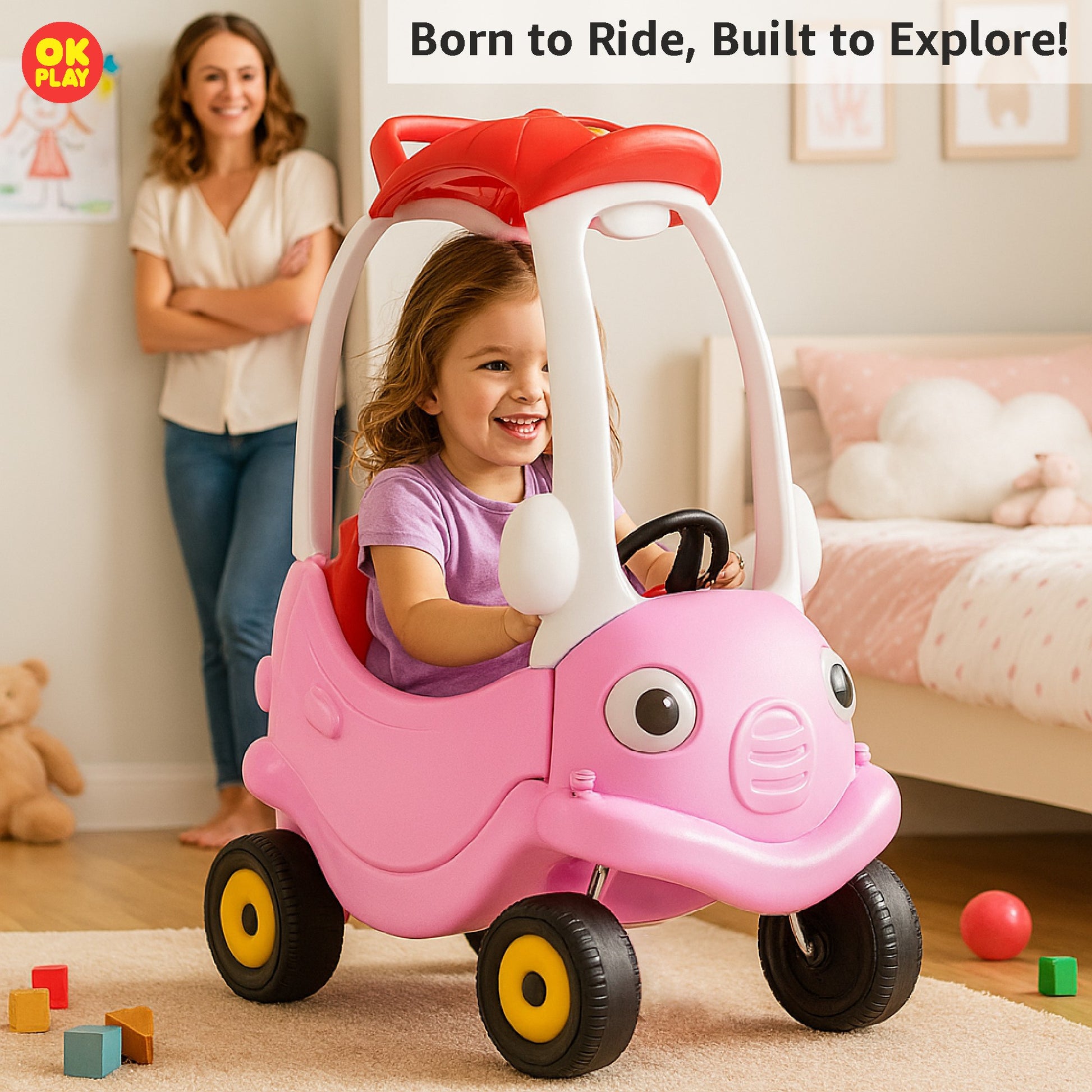 OK PLAY Miss Coupe Car | Ride On & Push On Car | with Steering Wheel | Doors on Both side | Round Edges | Indoor & Outdoor Play | Perfect for Home, School & Playground | Perfect Gift