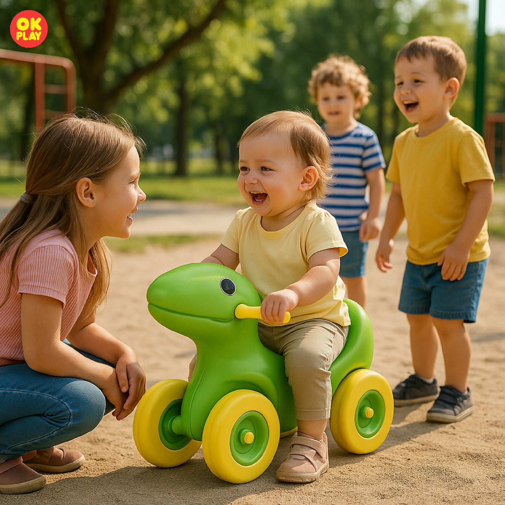 The OK Play My Pet Ride-On is a delightful and engaging ride-on toy designed to provide little ones with endless fun while promoting their motor skills and coordination. Crafted from high-quality, child-safe, and durable plastic, this ride-on features a sturdy and ergonomic design, ensuring a comfortable and secure riding experience for toddlers.With its adorable pet-inspired design and bright, vibrant colors, the My Pet Ride-On instantly captures children's attention, making it a favorite companion for indoor and outdoor play. The easy-to-grip handlebars and smooth-rolling wheels allow for effortless movement, helping kids develop balance, strength, and confidence as they push and ride.Designed for toddlers aged 1.5 years and above, this lightweight yet sturdy ride-on is easy for little ones to maneuver, while the wide seating area and stable base provide added safety. The compact and easy-to-carry design makes it perfect for both home and travel.The OK Play My Pet Ride-On is not just a fun toy but also a great way to encourage active play and independent movement, helping children enhance their spatial awareness and coordination skills in a safe and engaging way.