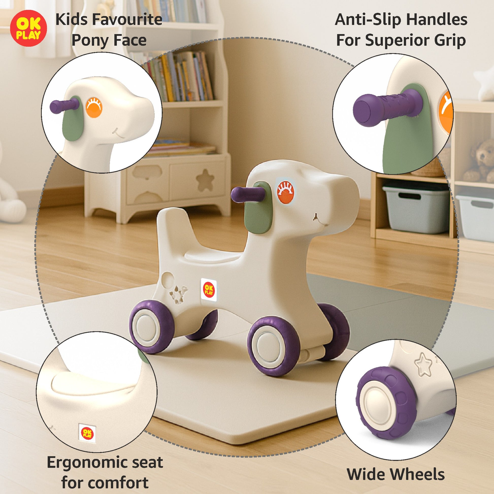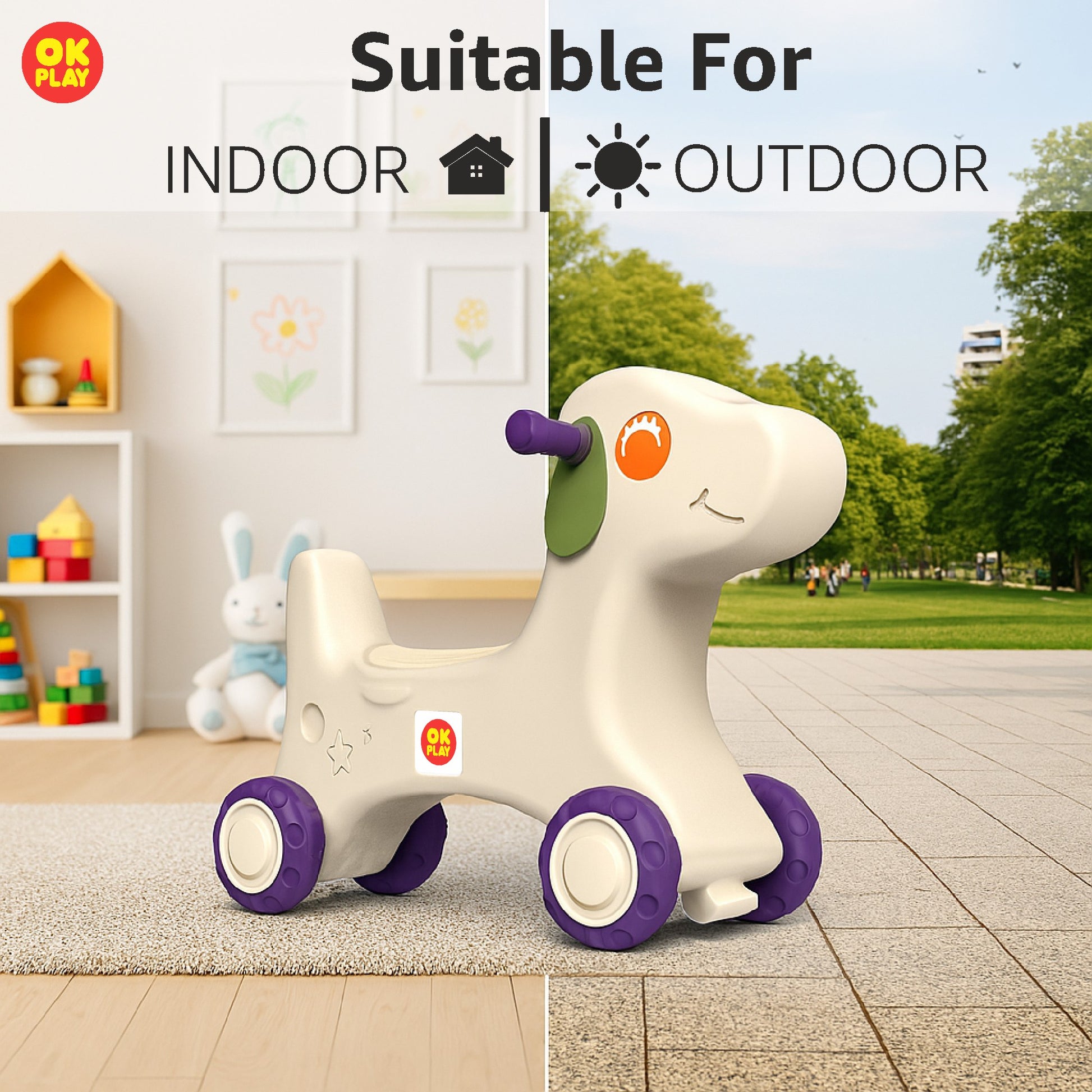 Suitable for Ages 2 Years & Above – The OK Play Puppy Ride-On is a fun and engaging ride-on toy designed to provide toddlers with an exciting and safe riding experience. Shaped like an adorable puppy, this ride-on encourages independent movement, balance, and coordination, making it an ideal choice for early development.Made from high-quality, durable, and non-toxic plastic, the Puppy Ride-On is lightweight yet sturdy, ensuring stability and safety for little riders. The ergonomic seat and easy-to-grip handles offer extra comfort and control, while the wide base design prevents tipping, making it perfect for both indoor and outdoor play.With its vibrant colors, smooth edges, and playful puppy design, this ride-on sparks imaginative play and adventure for young children. It is easy to clean, assemble, and carry, making it a convenient choice for parents and a delightful companion for little ones.Let your child enjoy hours of fun and active play with the OK Play Puppy Ride-On, a toy designed to promote physical activity, confidence, and endless joy!