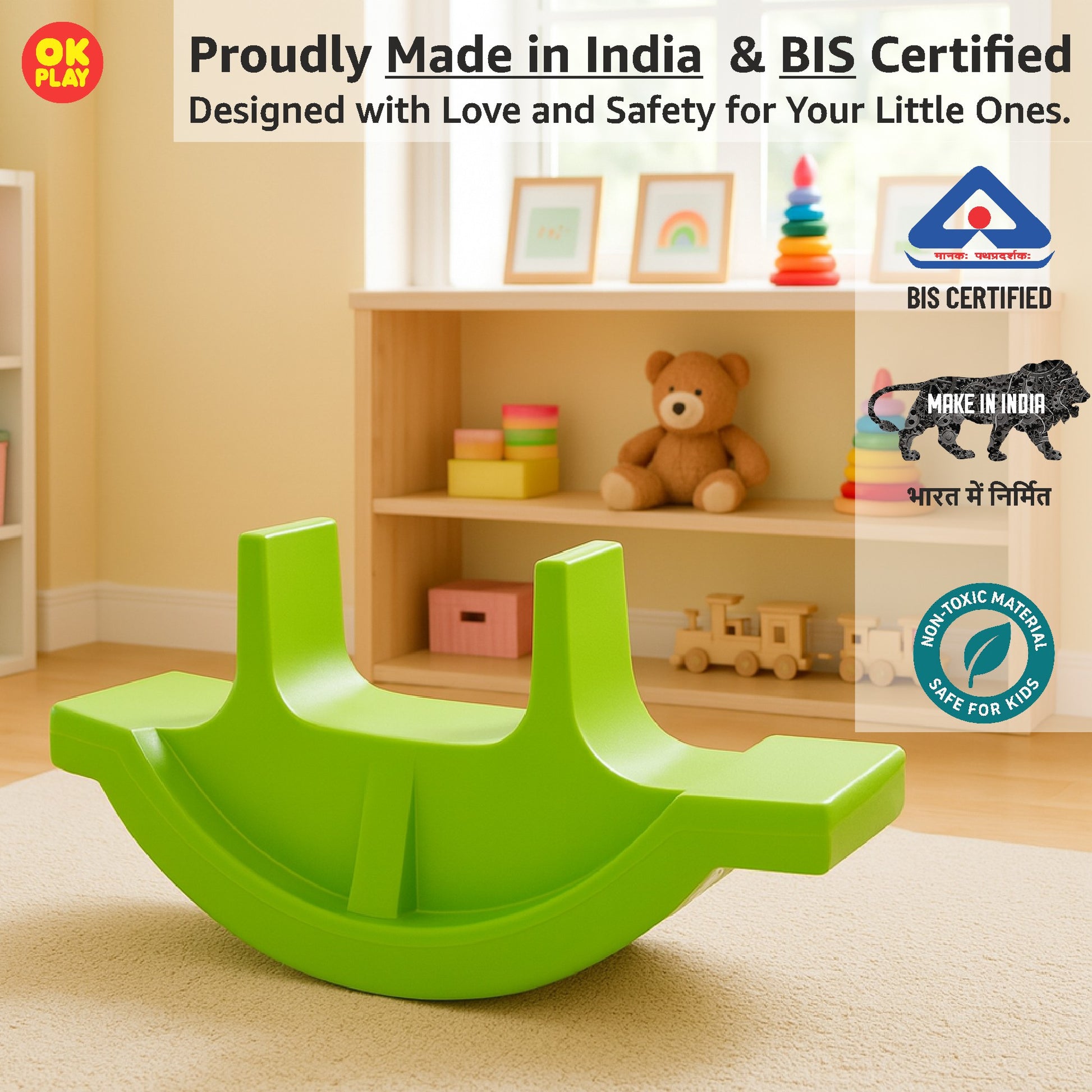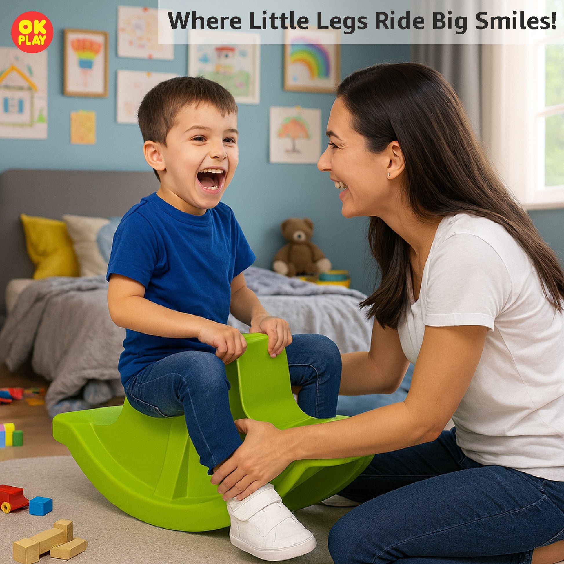 The OK Play Small Rocker is a compact and fun-filled ride-on toy designed for toddlers to enjoy a safe and exciting rocking experience. Made from high-quality, non-toxic, and child-friendly plastic, this rocker ensures durability, stability, and safety for young children.Its smooth, rounded edges and ergonomic seat design provide maximum comfort, while the easy-to-hold handles offer a firm grip, helping kids maintain balance and coordination. The lightweight yet sturdy construction makes it easy to move and store, making it perfect for both indoor and outdoor play.With its bright colors and engaging design, the OK Play Small Rocker not only provides endless fun but also helps in developing motor skills, balance, and confidence in young children. Ideal for kids aged 1 year and above, this rocker is a wonderful addition to any playroom, daycare, or preschool setting.