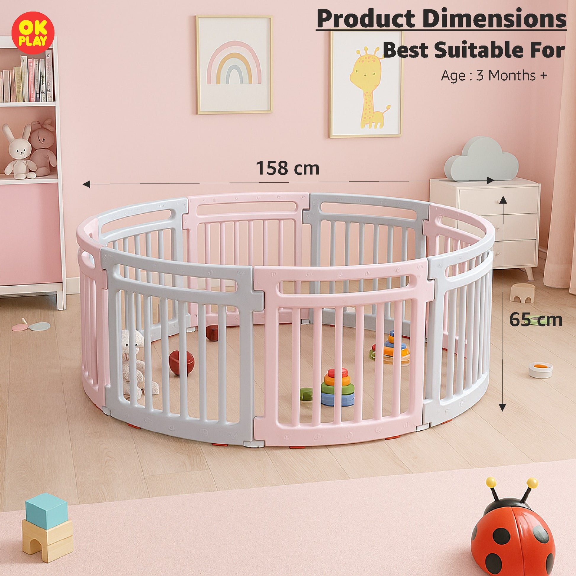 OK PLAY 8 Panel Round Playpen For Kids | Play Yard | Baby Fence | Perfect for Home, School & Playground | Easy Assemble | Anti Slip | Indoor Outdoor Games | Safe toy | Perfect Gift