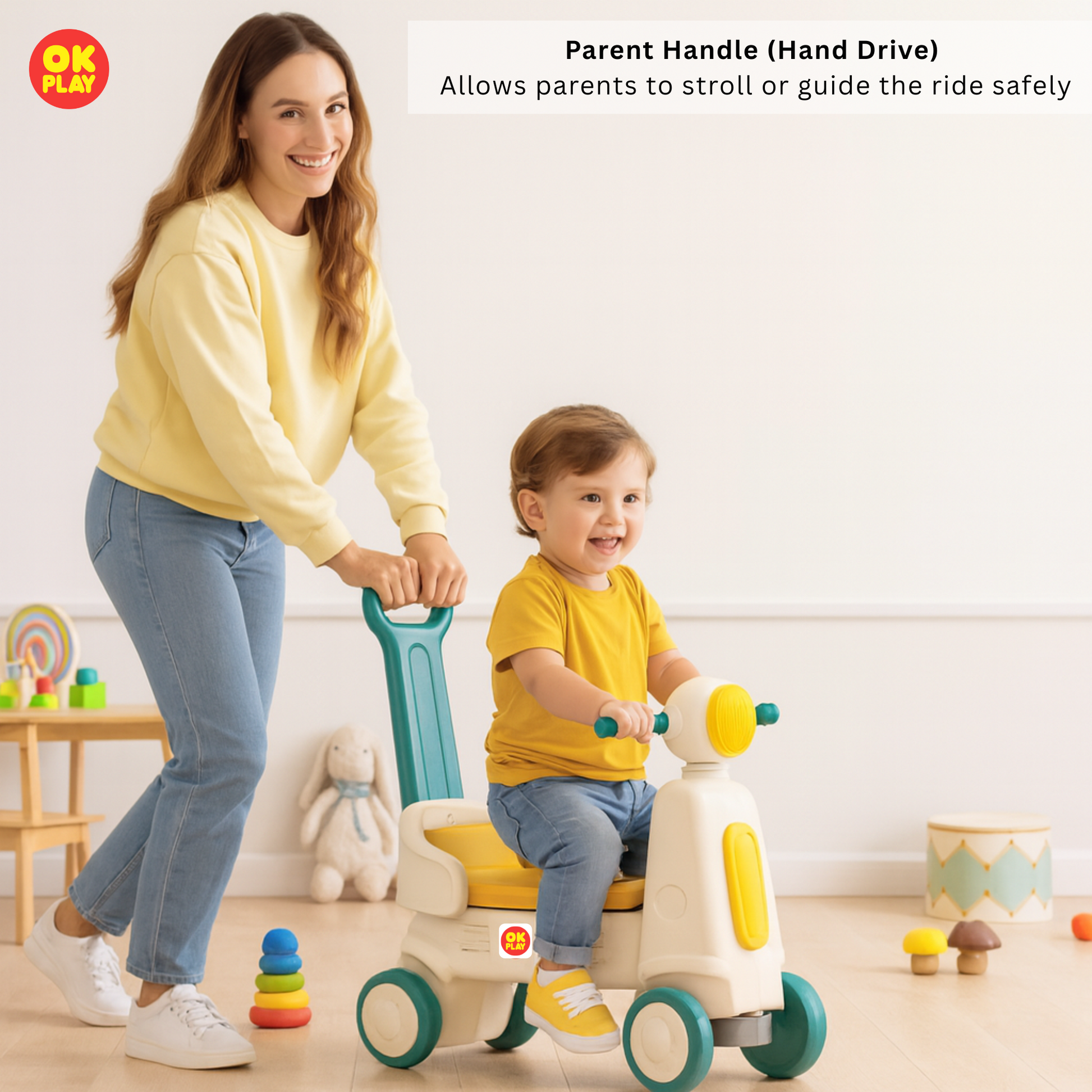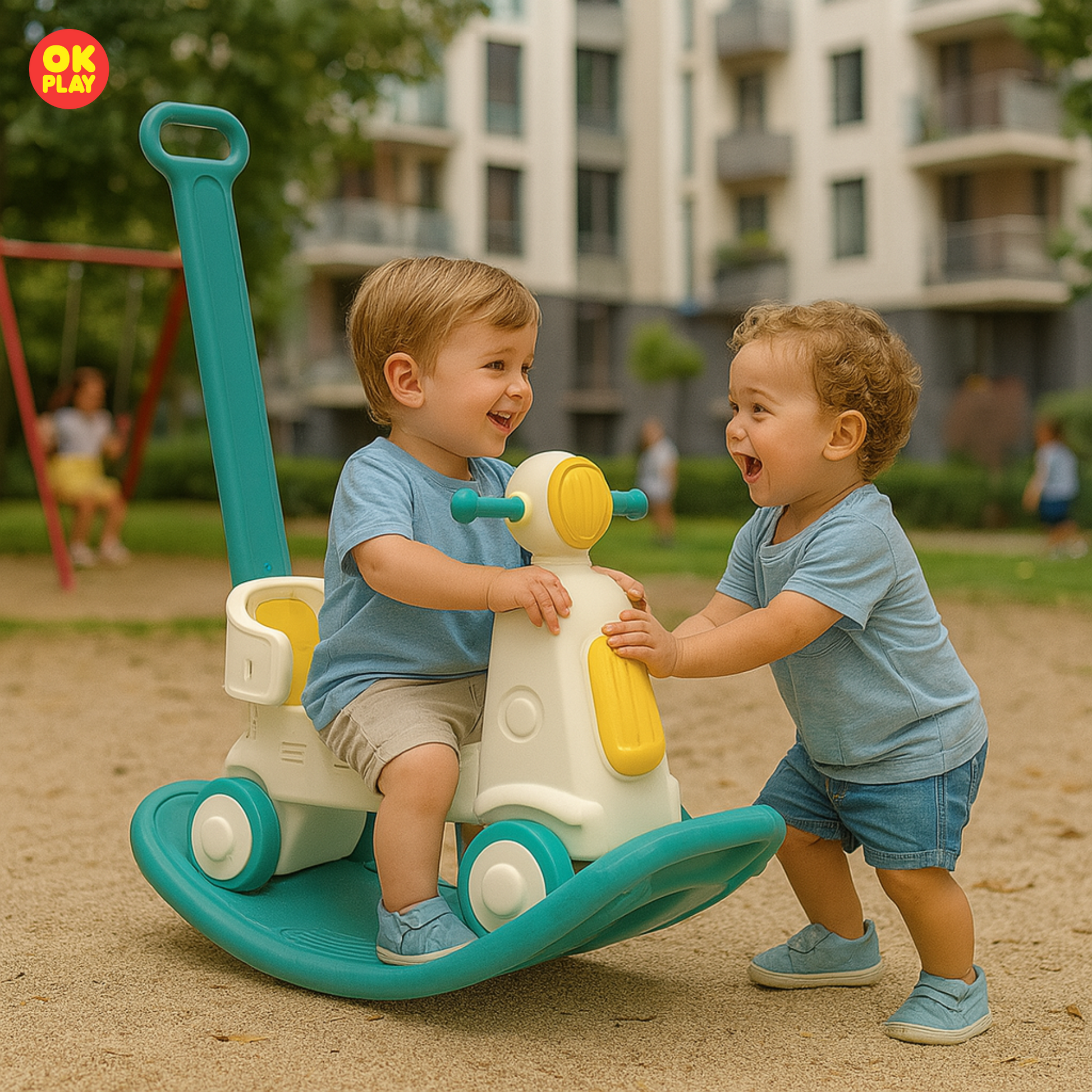 "Suitable for Ages 2 Years & Above – The OK Play Car Ride-On with Rocker Combo is a versatile 2-in-1 toy designed to bring endless fun and active play to your little one. It functions as a rocker for younger toddlers, providing a gentle and soothing motion, and can be easily transformed into a ride-on car as your child grows, encouraging movement and independence.Made from high-quality, non-toxic, and durable plastic, this ride-on is built for long-lasting play. It features a comfortable seat, easy-grip handles, and an anti-skid base, ensuring maximum safety and stability. The smooth edges and lightweight design make it easy for children to handle and parents to move around.The bright and cheerful color combination, along with the car-inspired design, captures kids' attention, sparking imaginative play. This ride-on helps develop balance, coordination, and motor skills, making it an excellent choice for indoor and outdoor fun.Give your child the joy of rocking and riding with the OK Play Car Ride-On with Rocker Combo – a perfect companion for their early adventures!"
