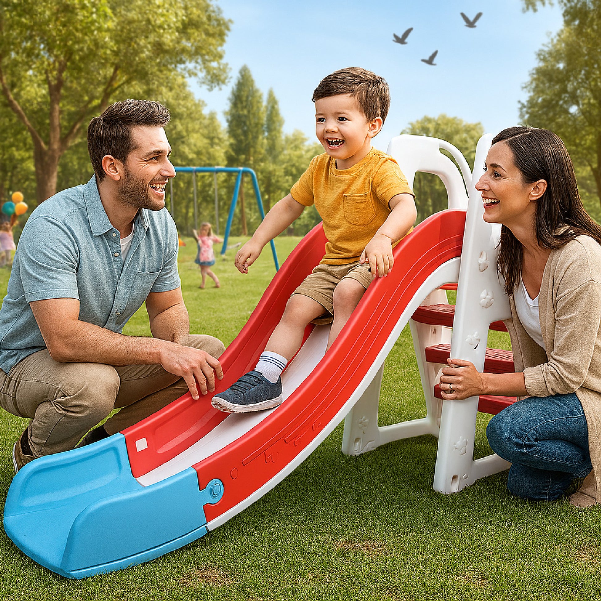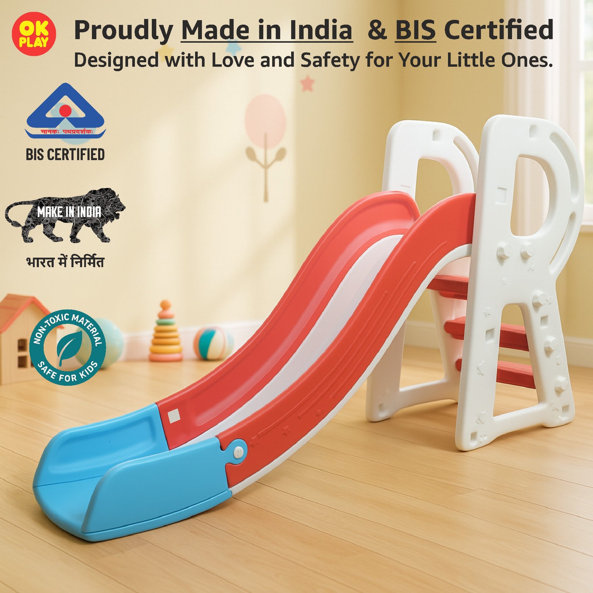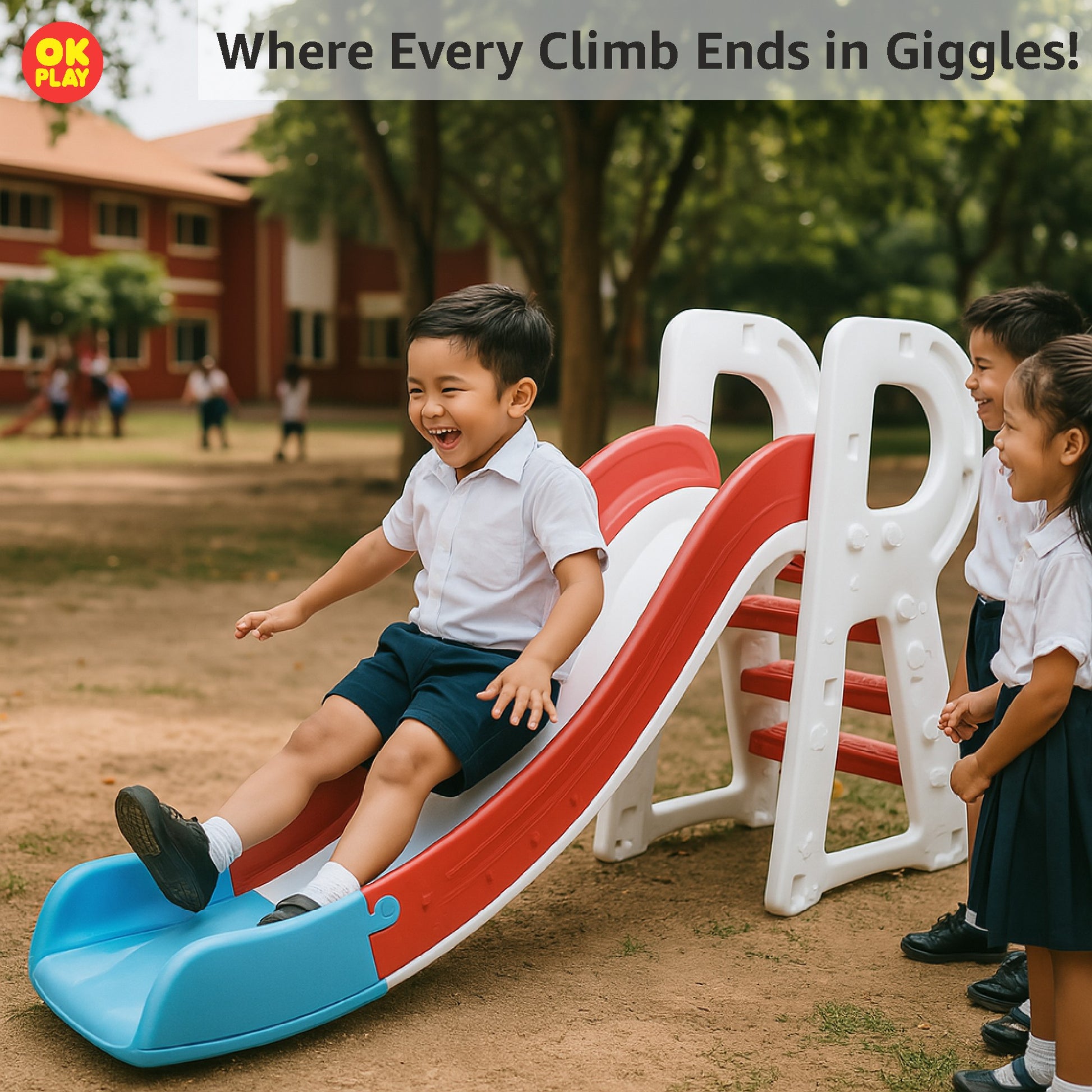 The OK PLAY Slide Supreme is a perfect addition to any play area, offering endless fun for children aged 2 years and above. Designed for both indoor and outdoor use, this slide is ideal for homes, gardens, schools, and playgrounds. Made from durable, weather-resistant, and non-toxic plastic, it ensures long-lasting safety and enjoyment. The anti-skid steps and smooth edges provide a secure climbing and sliding experience, while the lightweight design allows for easy portability. Quick and hassle-free to assemble, this slide is a great way to encourage active play, balance, and motor skill development. With its vibrant colour combination, it adds a fun and cheerful touch to any space.