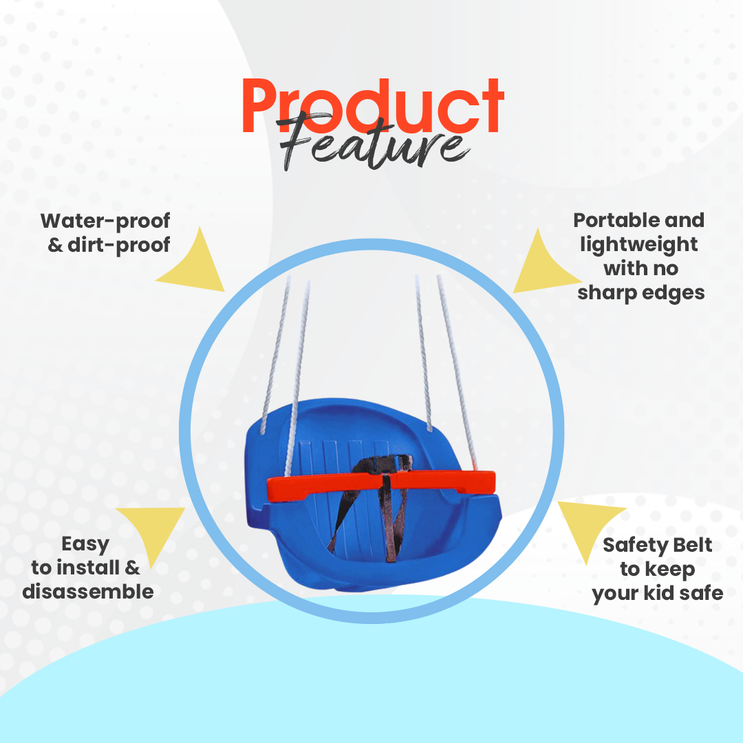 Give your little one a safe, fun, and exciting swinging experience with the OK Play Baby Swing. Designed for kids aged 2 years and above, this durable and child-friendly swing is perfect for both indoor and outdoor use. Made from high-quality, weather-resistant plastic, it ensures long-lasting performance and is easy to clean.The high backrest and secure safety belt provide extra support, keeping your child safely seated while they enjoy hours of play. The adjustable ropes allow you to customize the height to fit different spaces like gardens, balconies, or playrooms. Plus, the front safety bar adds extra protection, giving parents peace of mind.This swing is easy to assemble, lightweight, and portable, making it a hassle-free choice for parents. Not just a source of joy, it also helps develop balance, coordination, and motor skills in growing children. Bring home the OK Play Baby Swing today and let your little one swing into happiness!